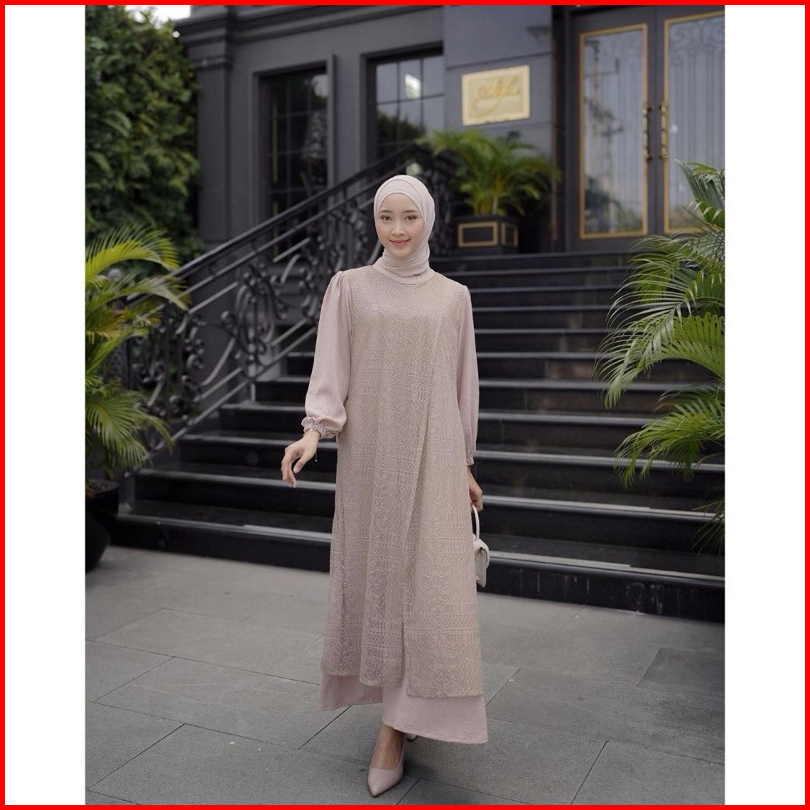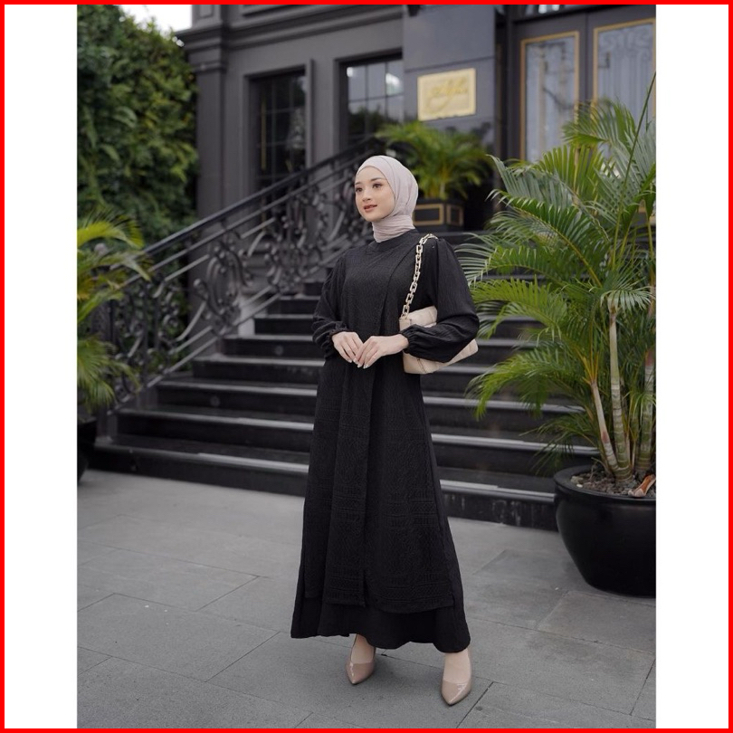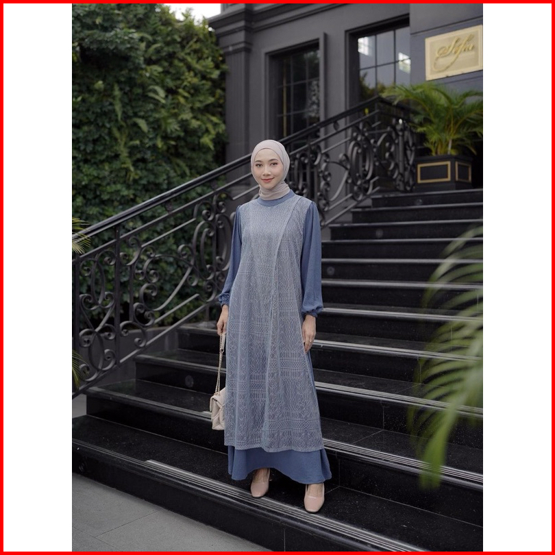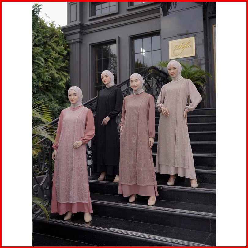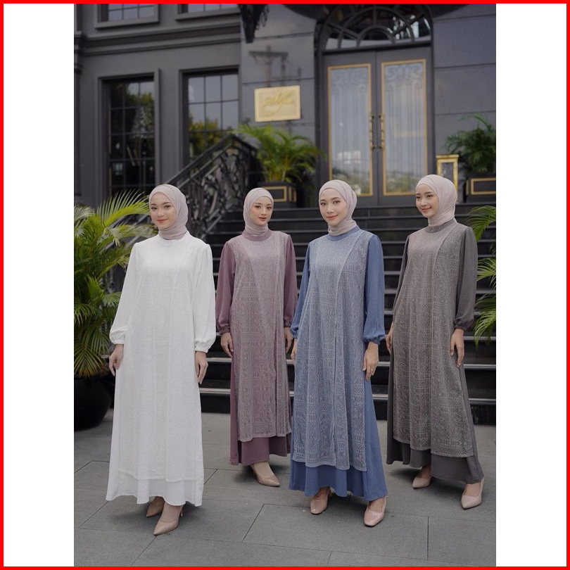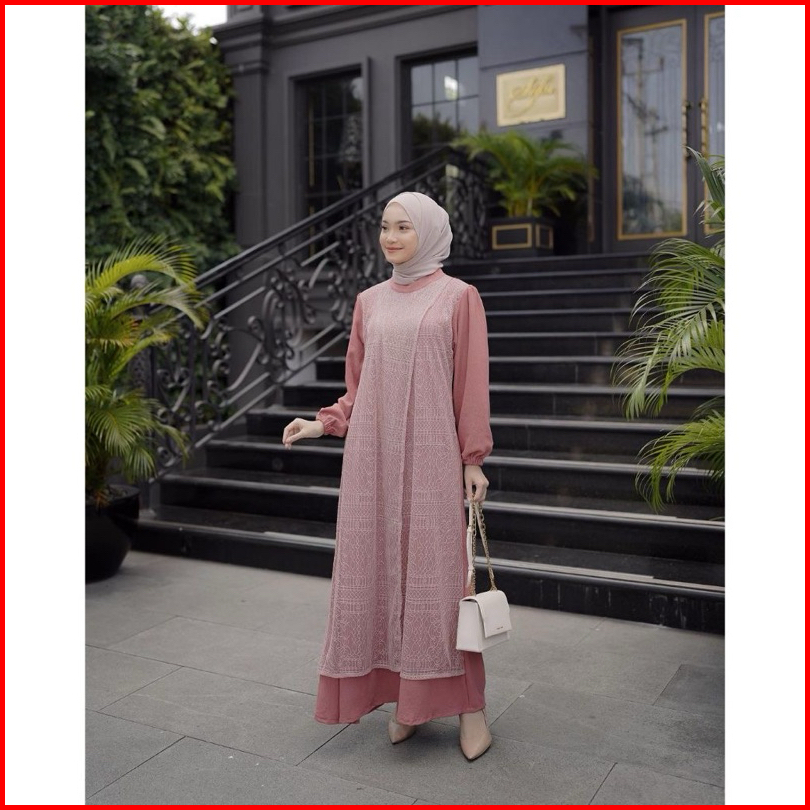 Best Seller Betharine Dress Mix Brukat Busui Friendly Bahan Ceruty Babydoll Gamis Wanita Muslim