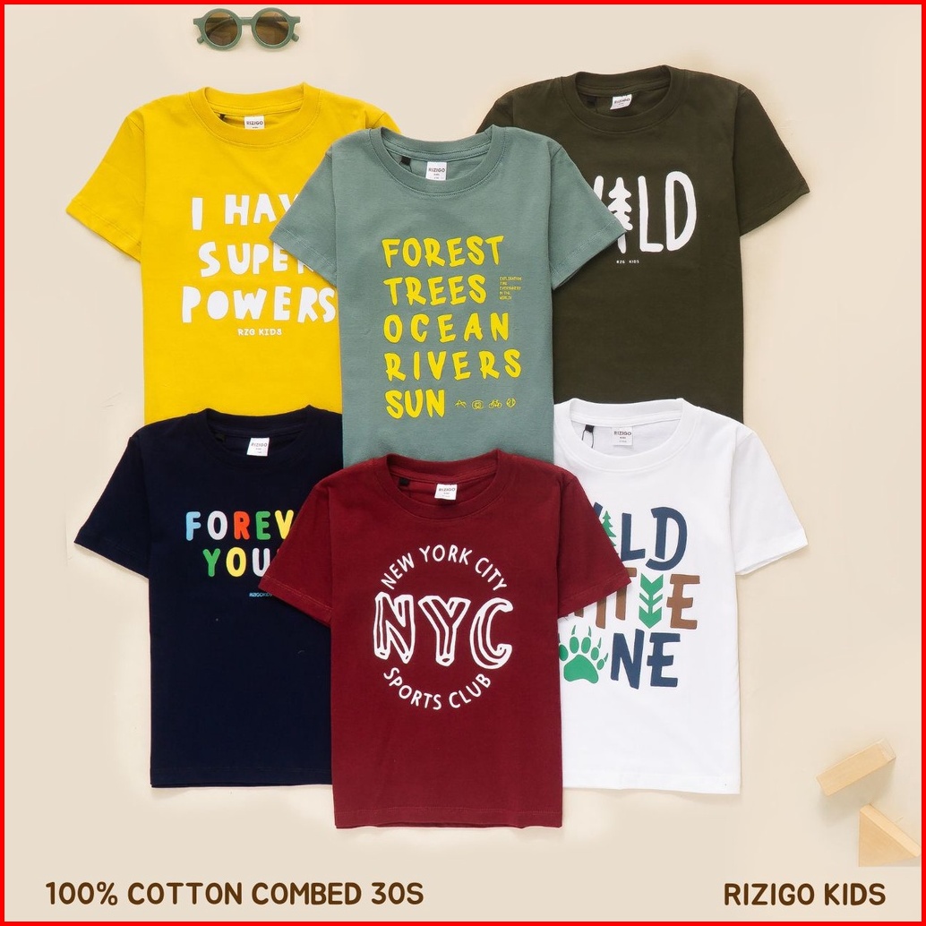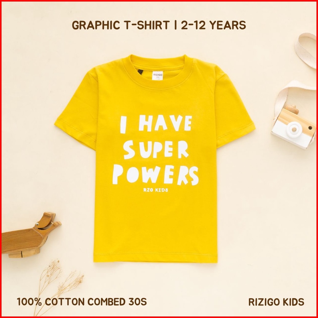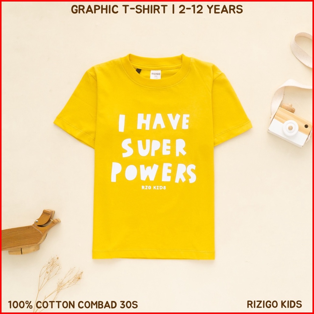 Rizigo Kids Baju Kaos Anak Laki Laki Unisex Super Power Lengan Pendek Katun Adem Ukuran 212 Tahun