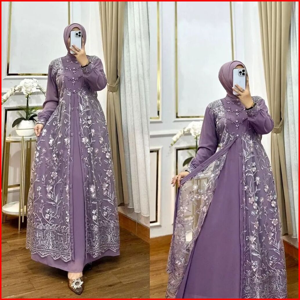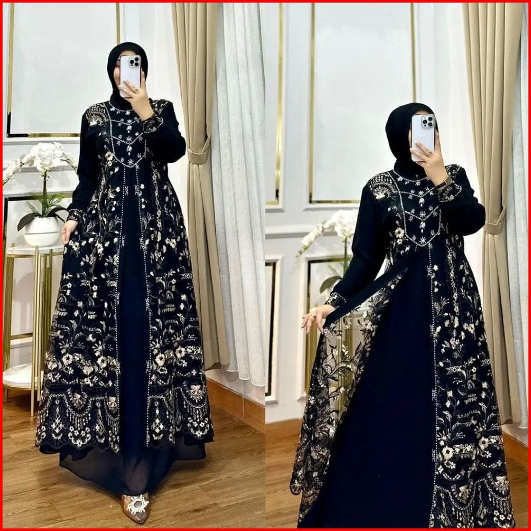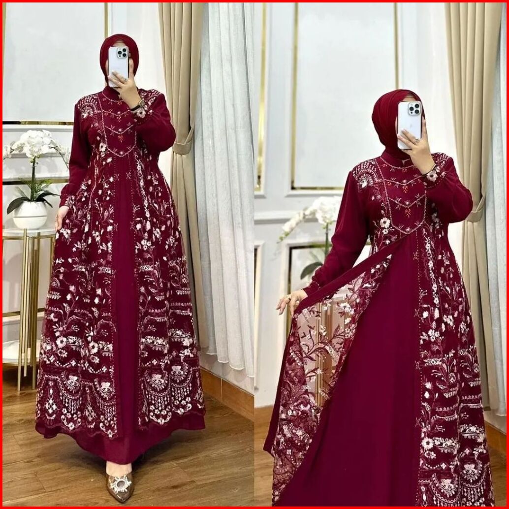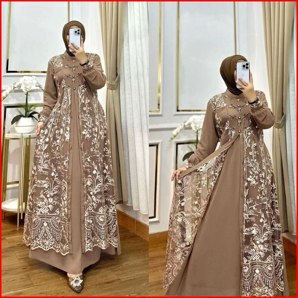Ellyfashion Alana Dress Brukat Bahan Ceruty Gamis Lebaran 2024 Model Gamis Terbaru Dress Kondangan