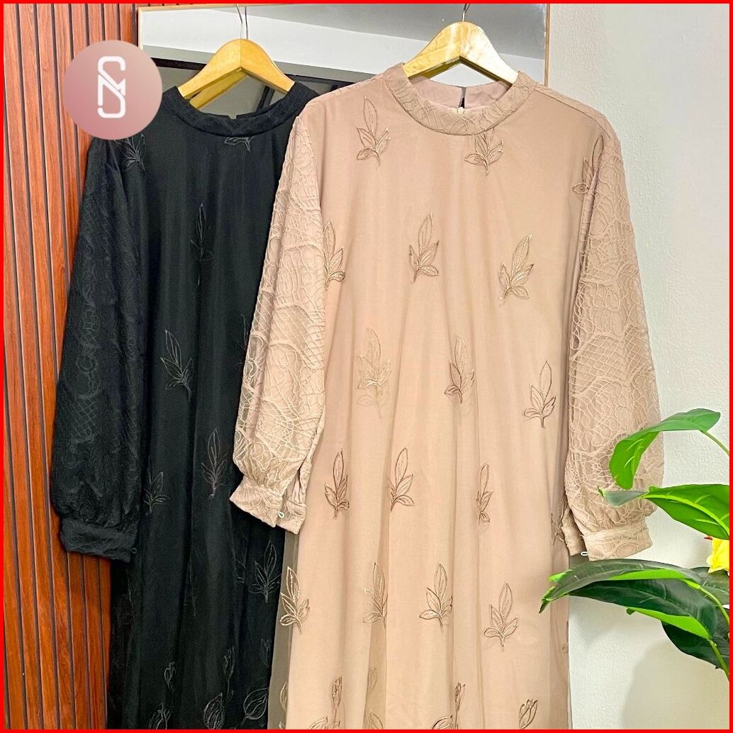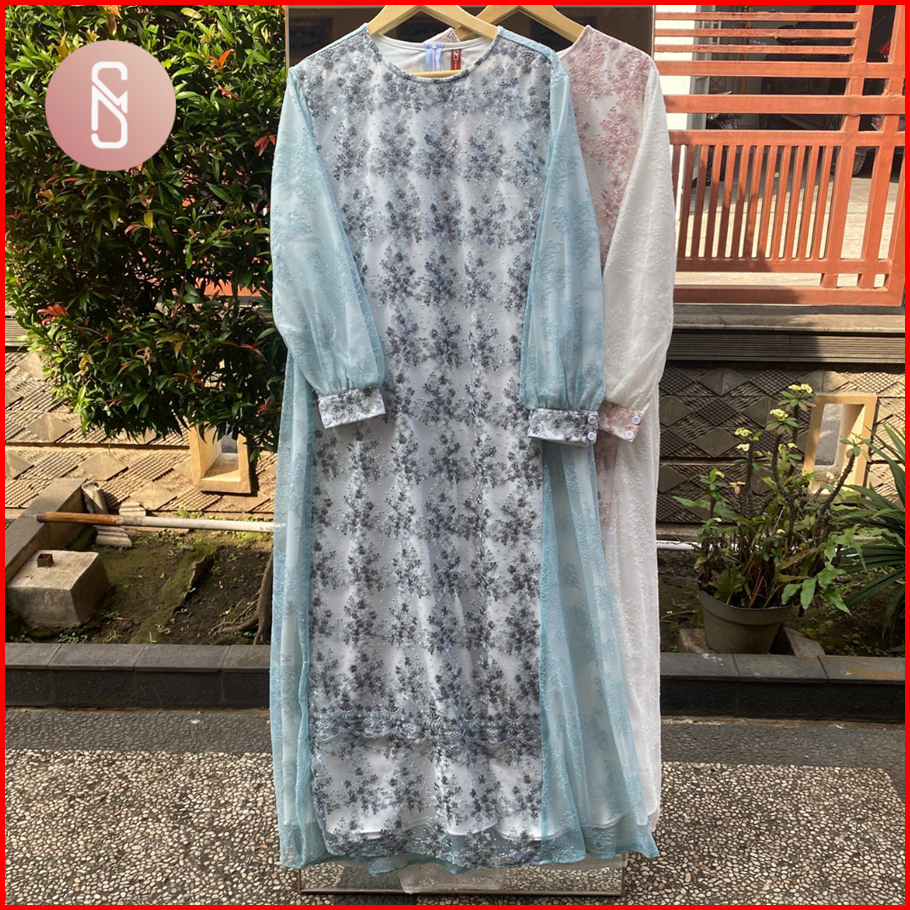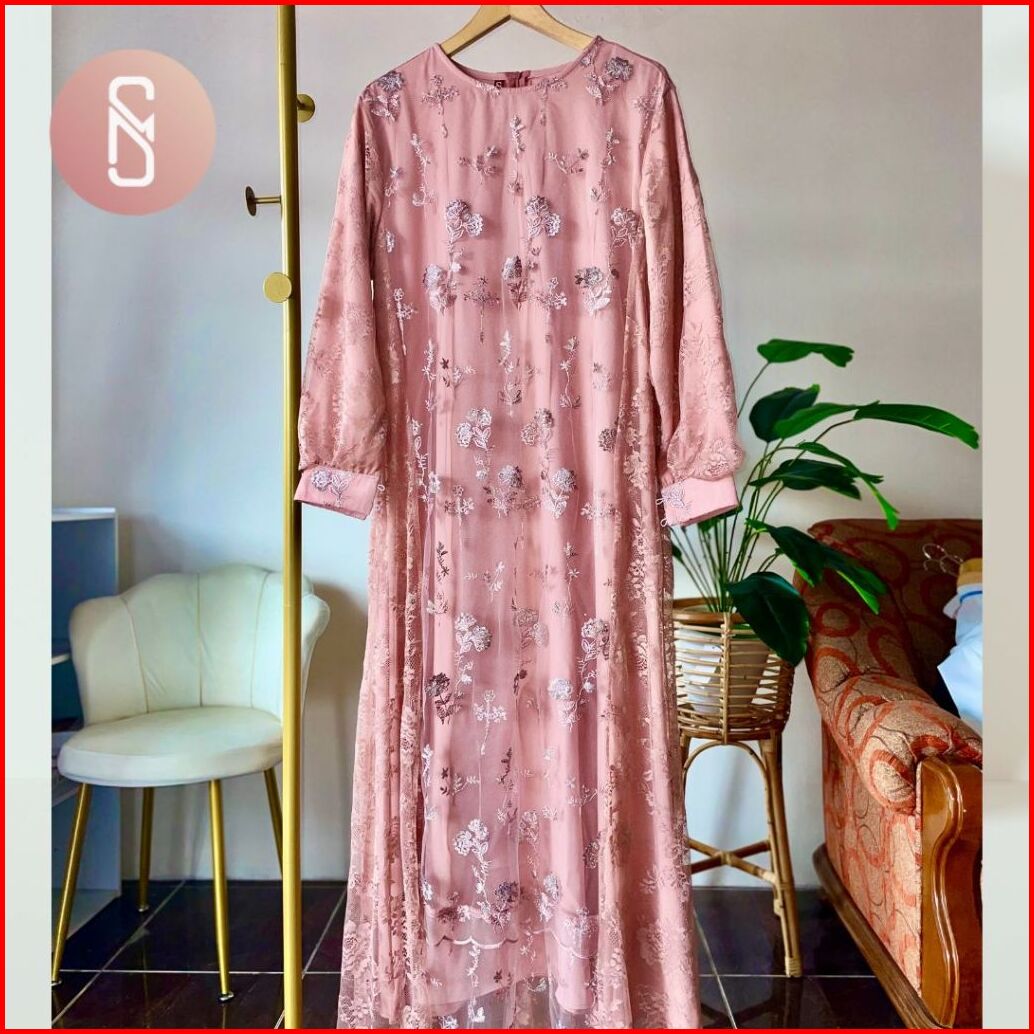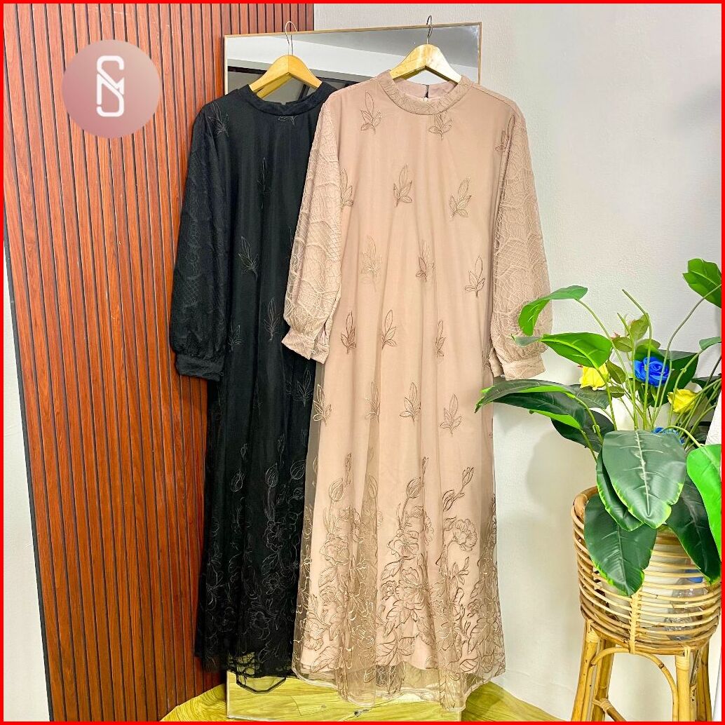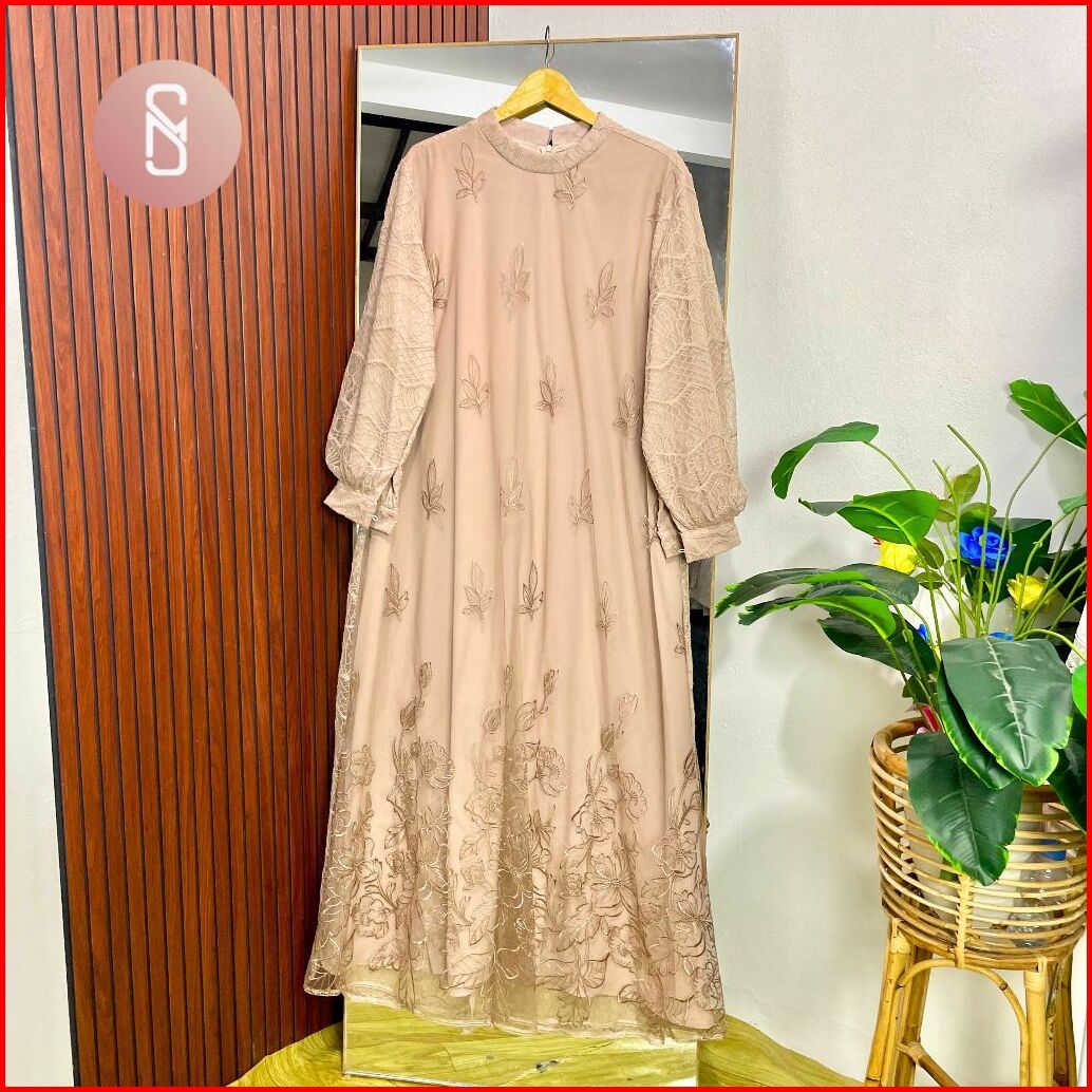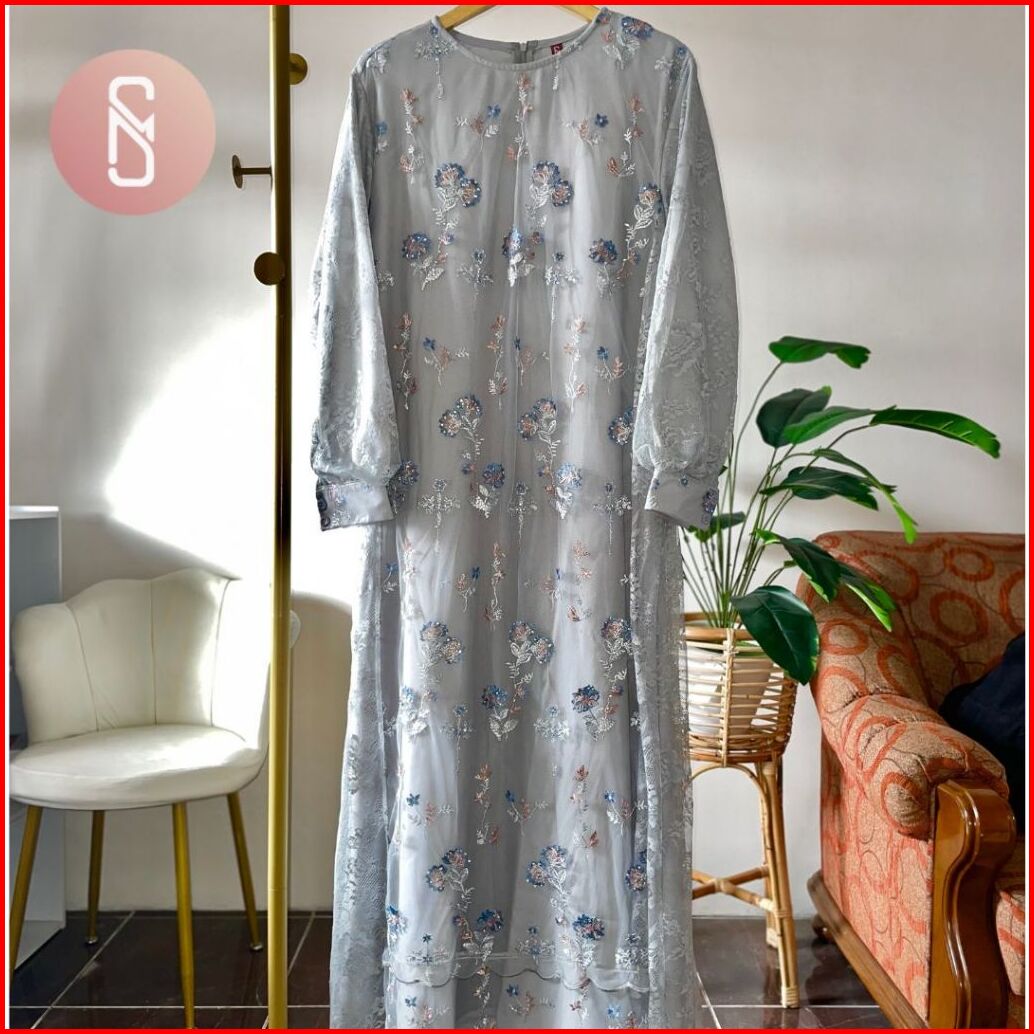Kirani Myshawl Jefanya Gamis Jumbo Tille Motif Kasual Kondangan Wisuda Kekinian Big Size Brukat Bunga Jumbo