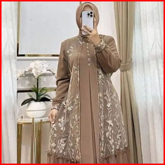 Intan Dress Maxy Gamis Ceruty Babydoll Premium Gamis Brukat Payet Baju Pesta Kondangan Gamis Jumbo