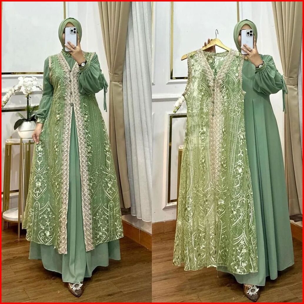 Dress Naura Model Outer Ceruty Mix Brokat Plus Renda Gamis Pesta Penikahan Lamaran Terbaru 2026