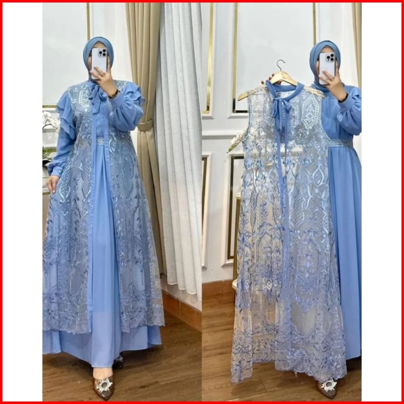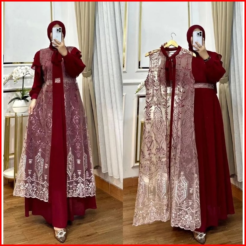 Gamis Brukat 2024 Pakaian Pesta Mewah Elegan Kekinian Ceruty Babydoll Mix Brukat Terbaru Premium