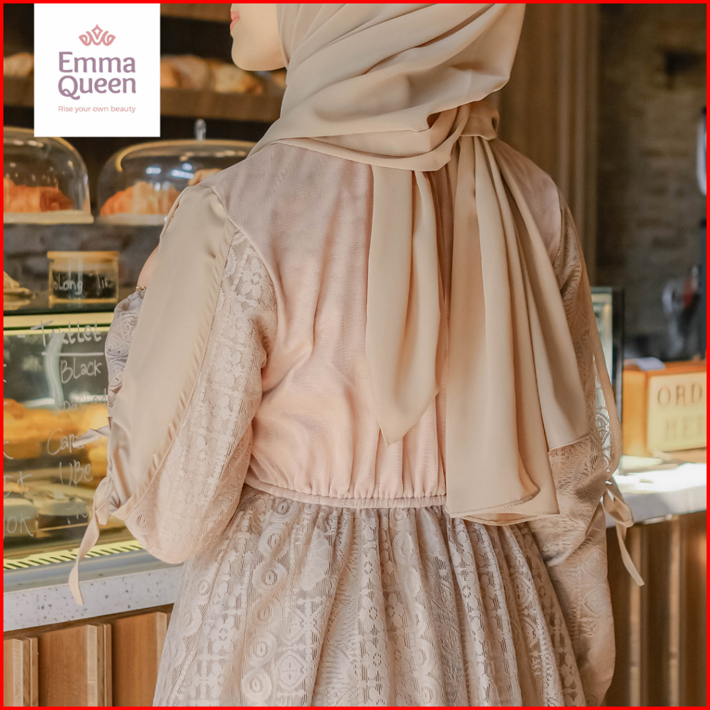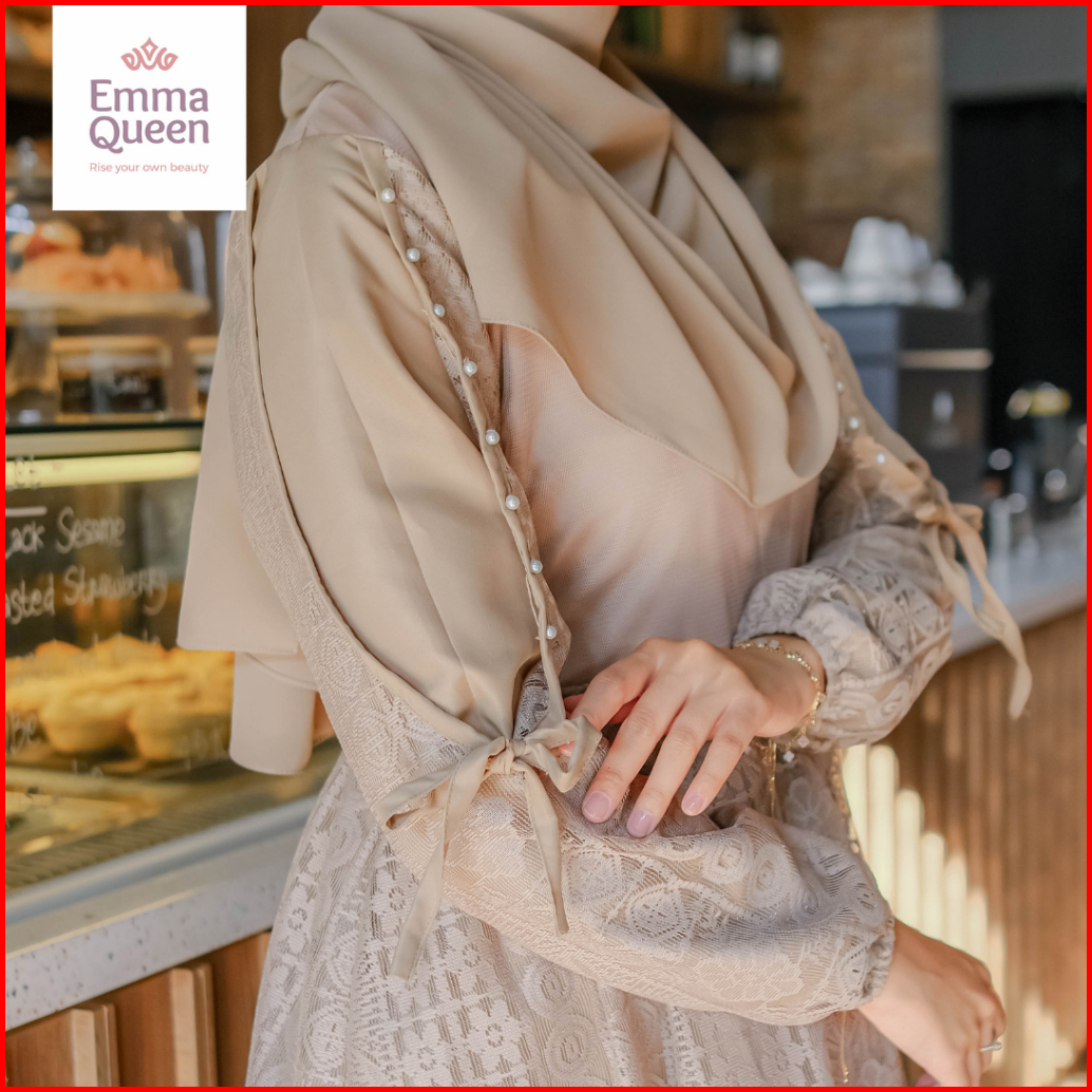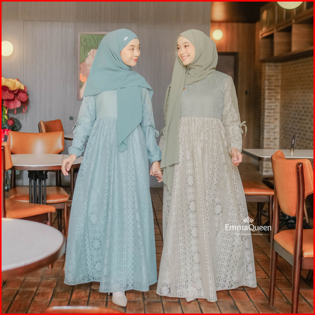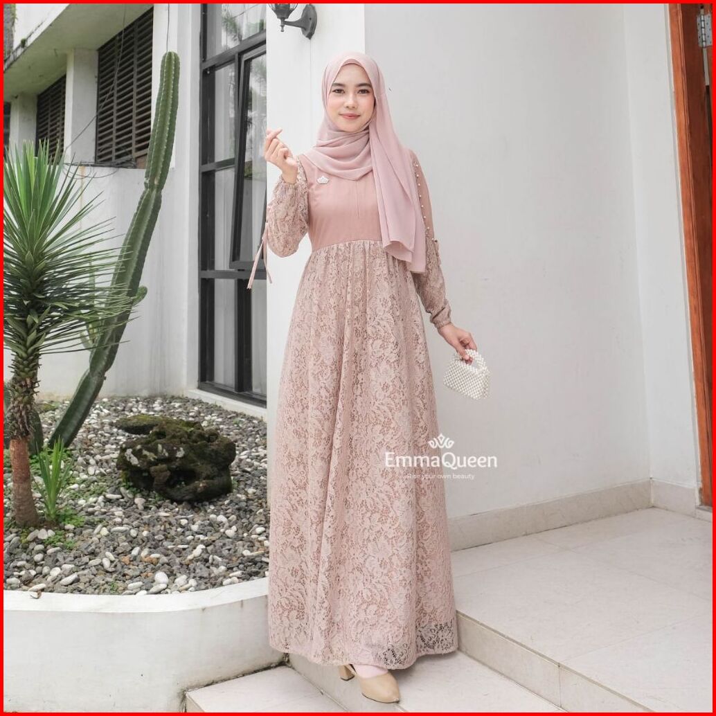 Emmaqueen - Dress Elaina Gamis Pesta Mewah Elegan Simple Katun Brukat Kombinasi Tile Xs Xxl Busui