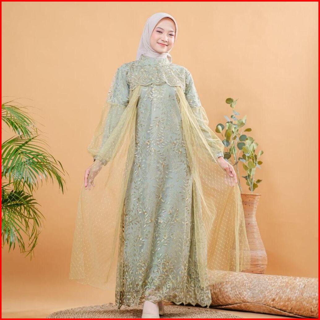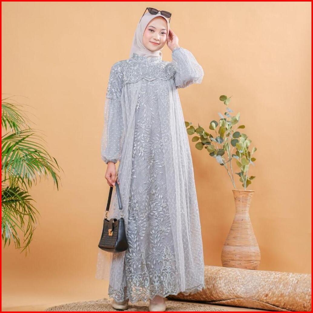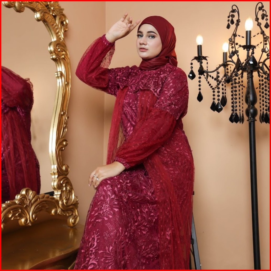 Raisha-gamis Brukat Nusaibah Jumbo Ld 120 Dress Kondangan Full Tile Brokat Bordir Keliling Mix Tile Dot Untuk Gamis Kond