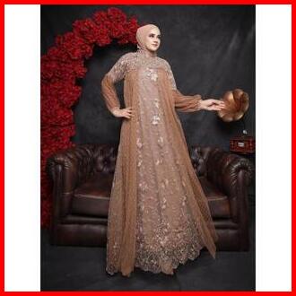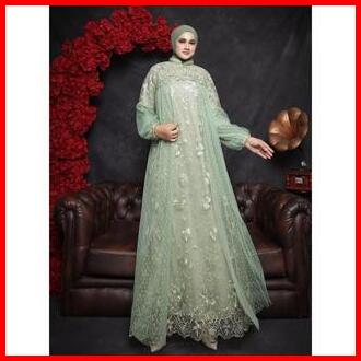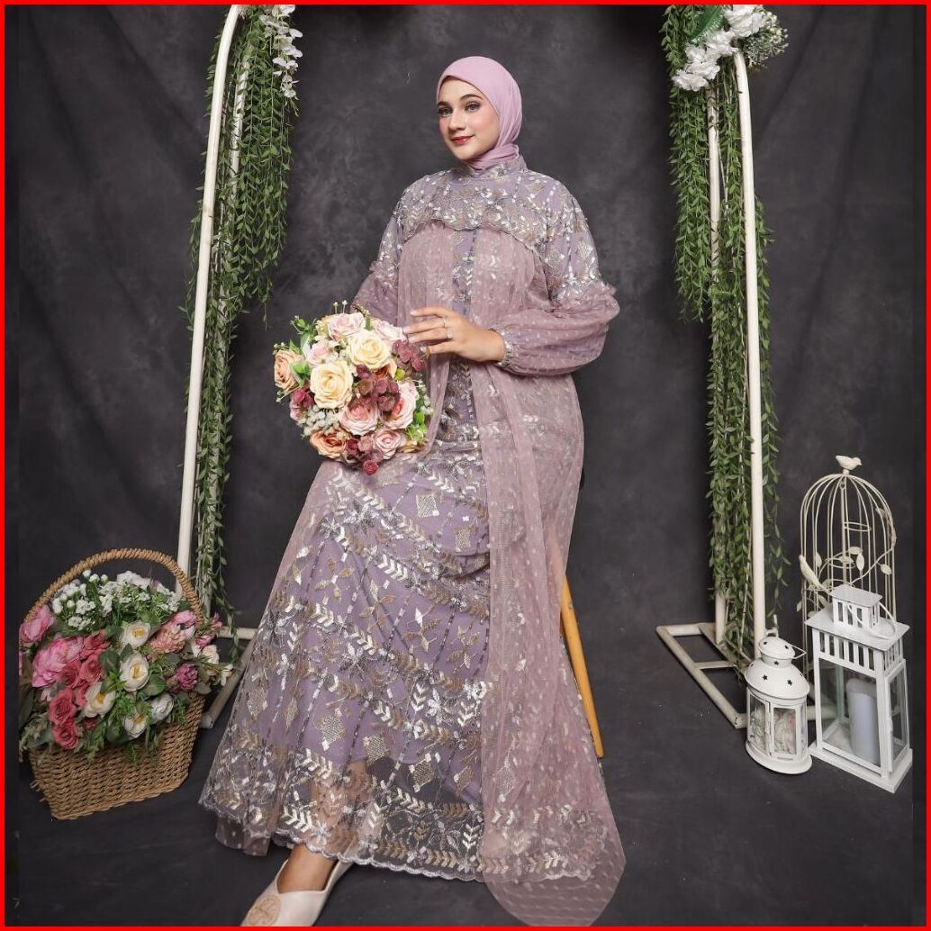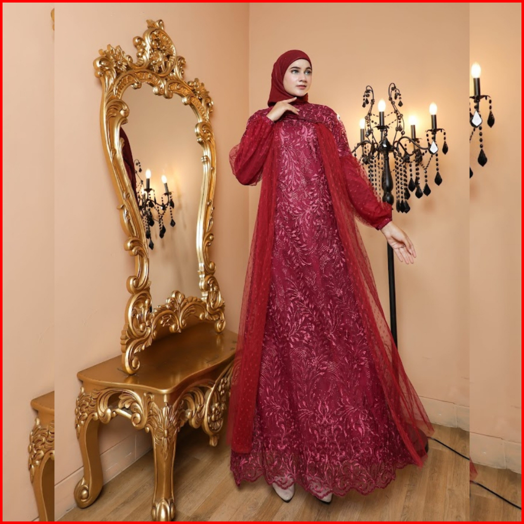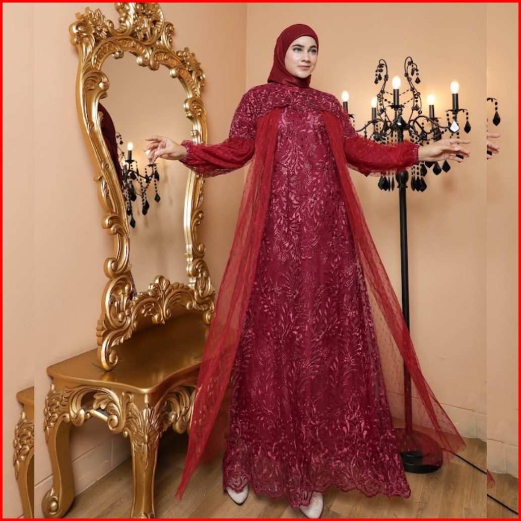 Raisha-gamis Brukat Nusaibah Jumbo Ld 120 Dress Kondangan Full Tile Brokat Bordir Keliling Mix Tile Dot Untuk Gamis Kond