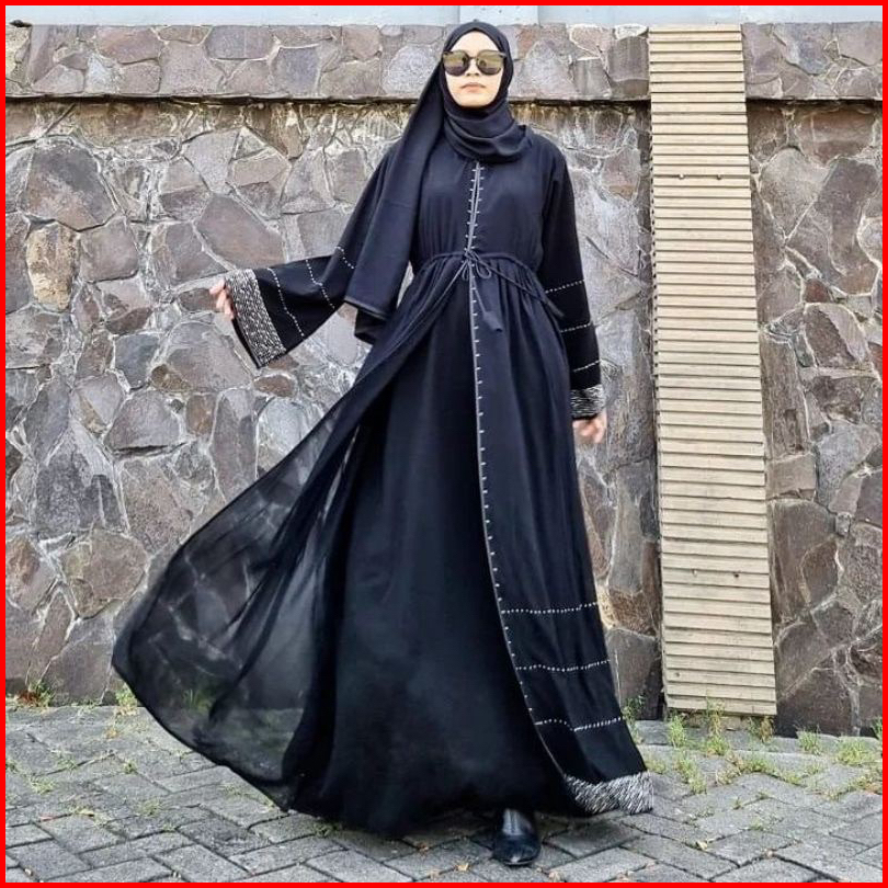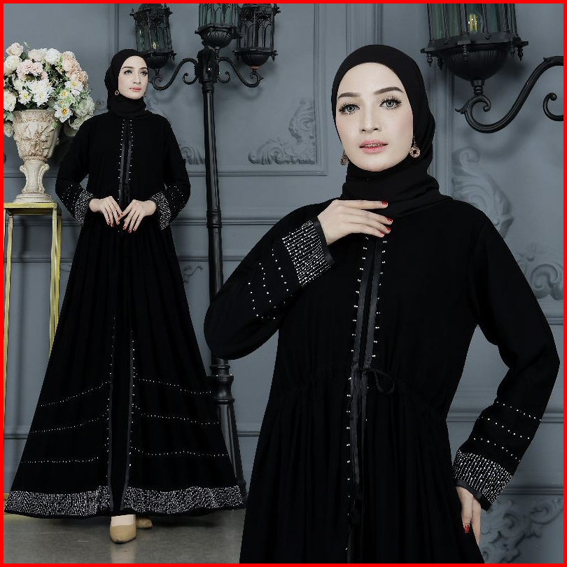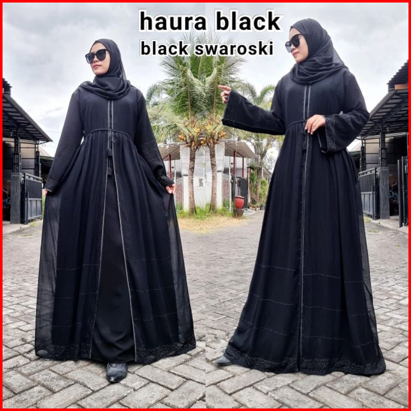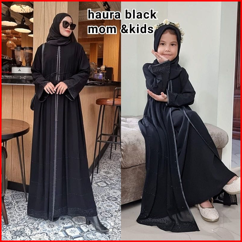 Marrakeshstore1 Abaya Arab Saudi Hitam Aplikasi Couple Ibu Dan Anak Anak Haura Kain Jetblack Great A