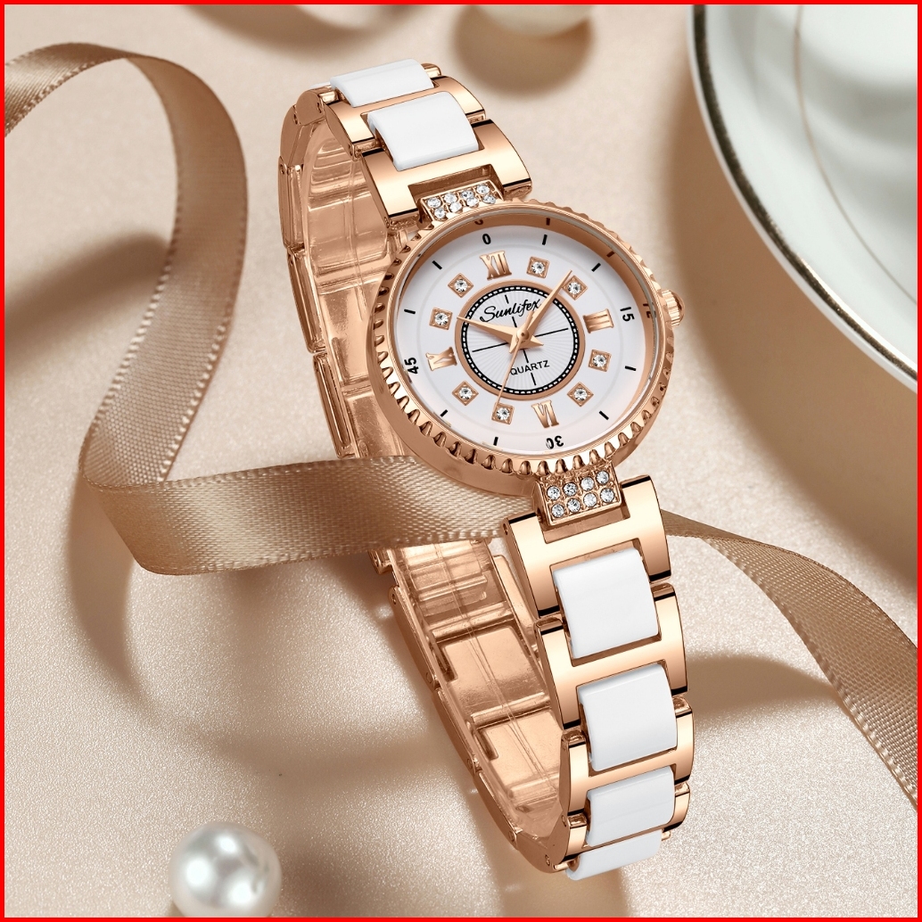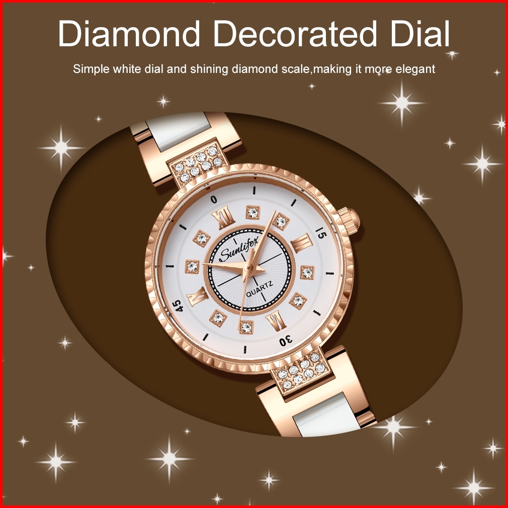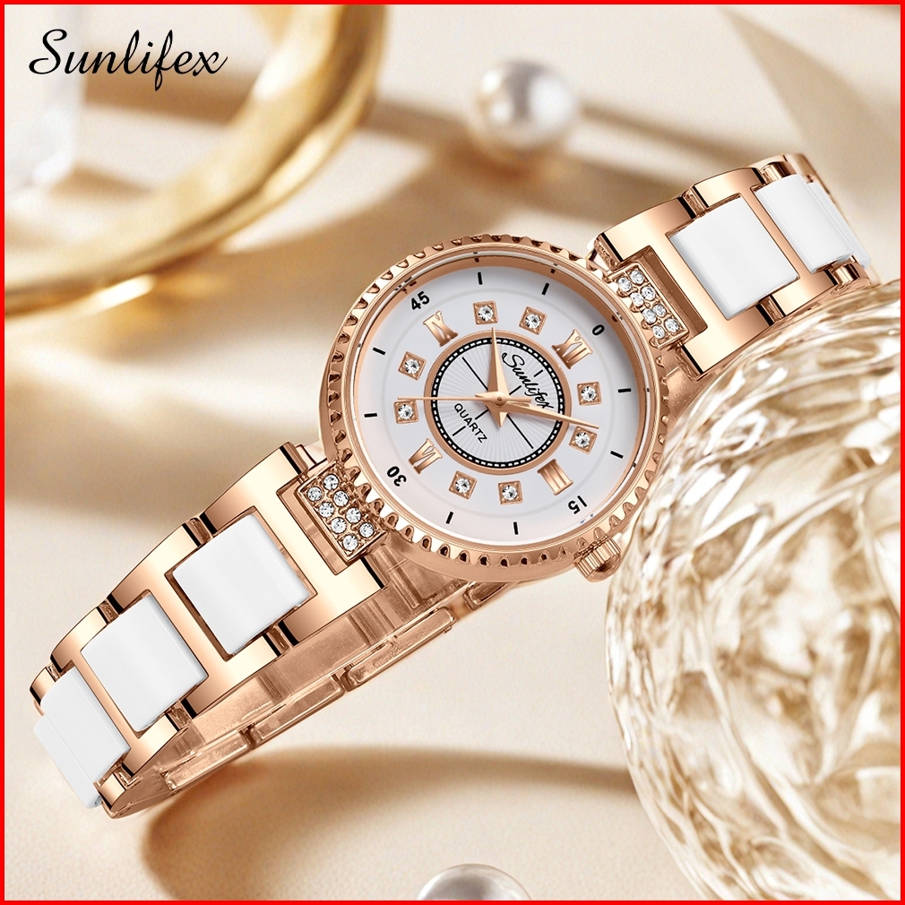 Sunlifex Jam Tangan Wanita Anti Air Berlian Elegan Korea Original Anti Air Tali Keramik Jam Tangan Cewek 8013