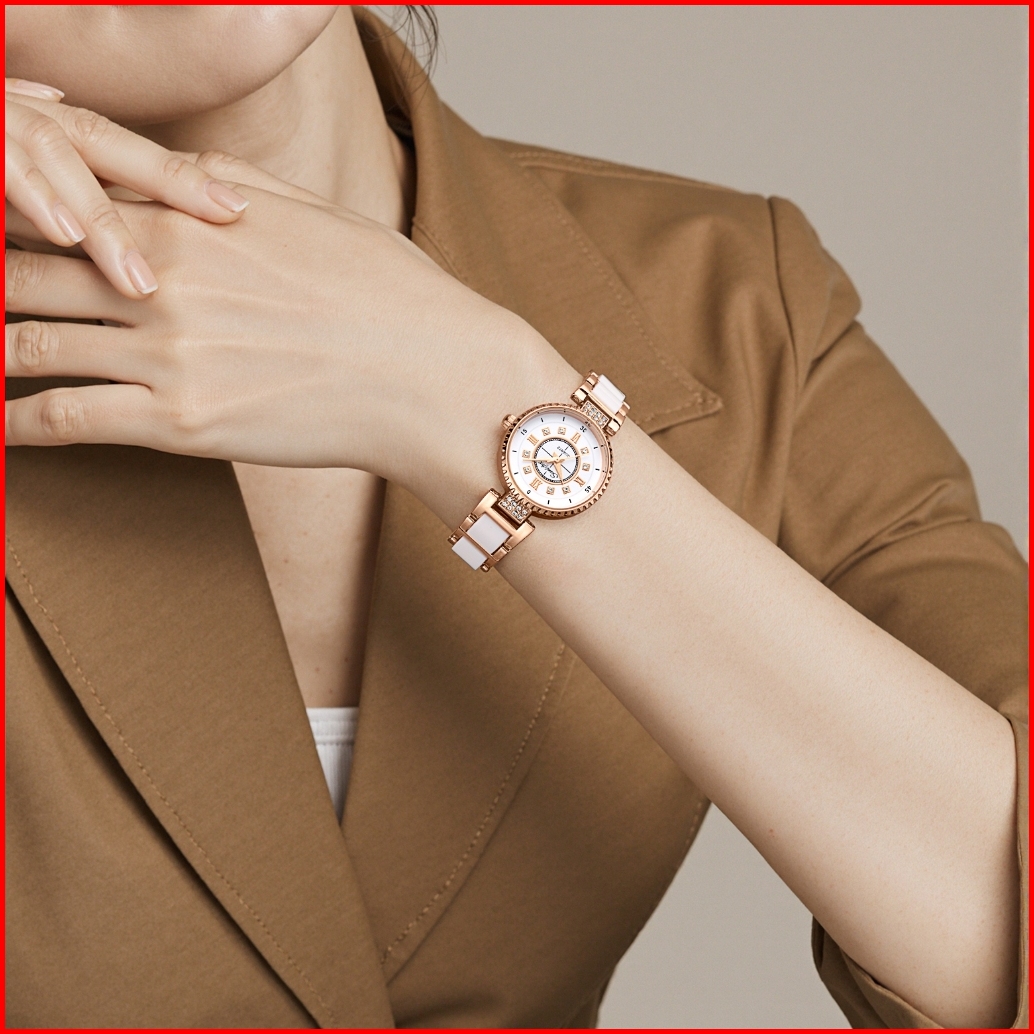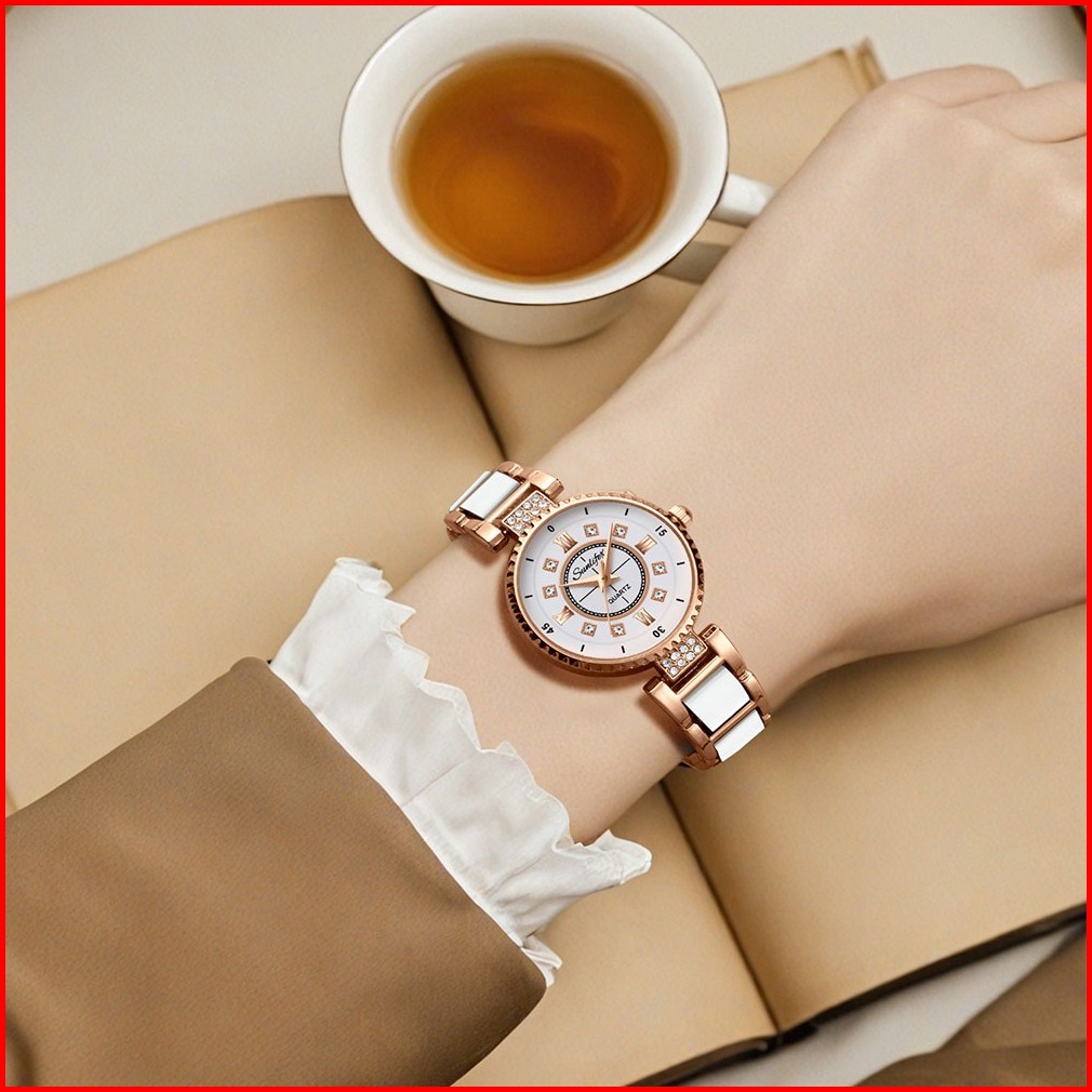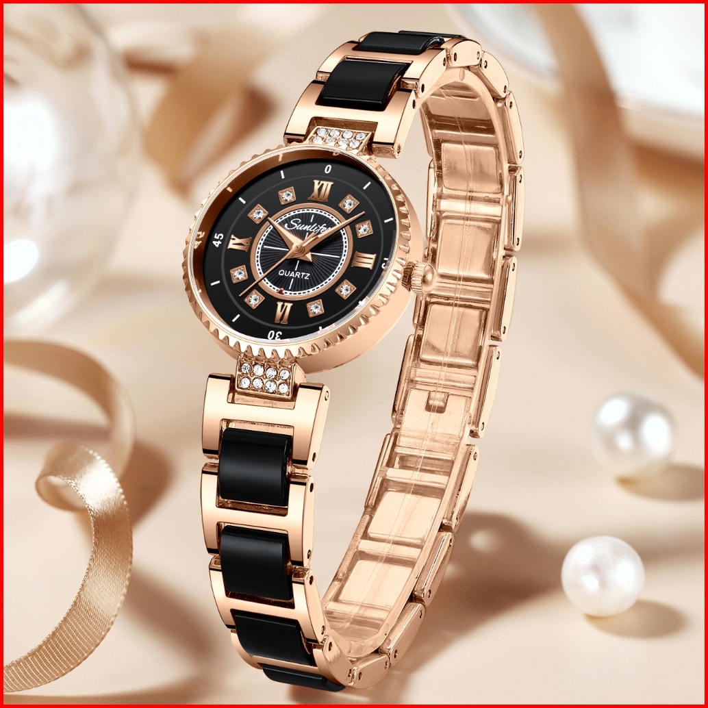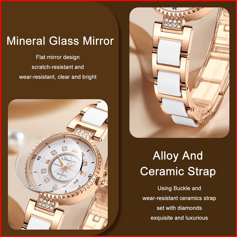 Sunlifex Jam Tangan Wanita Anti Air Berlian Elegan Korea Original Anti Air Tali Keramik Jam Tangan Cewek 8013