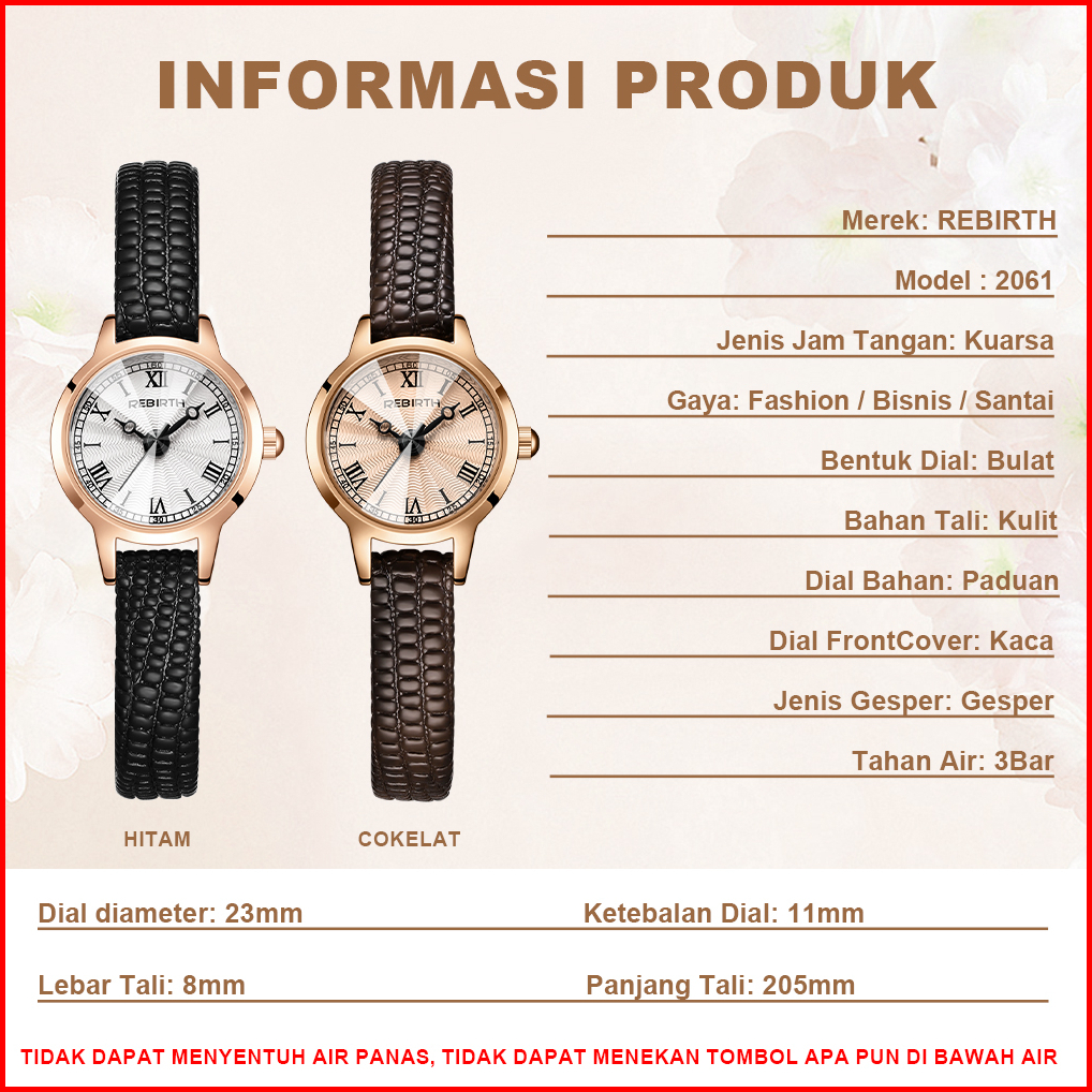 Rebirth Jam Tangan Wanita Jam Tangan Wanita Original Water Proof Tali Asli Kulit Jam Analog Vintage Anti Air