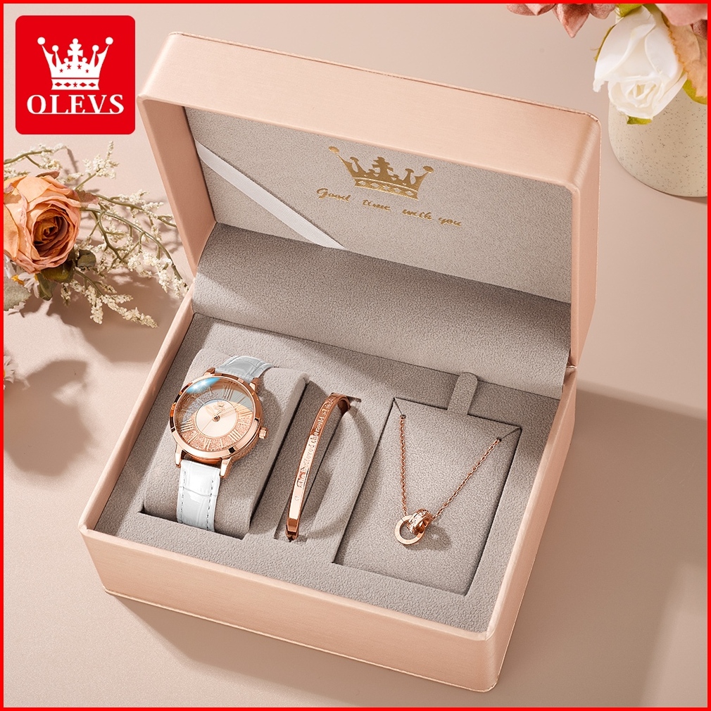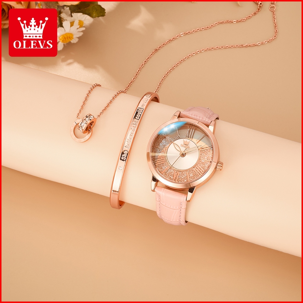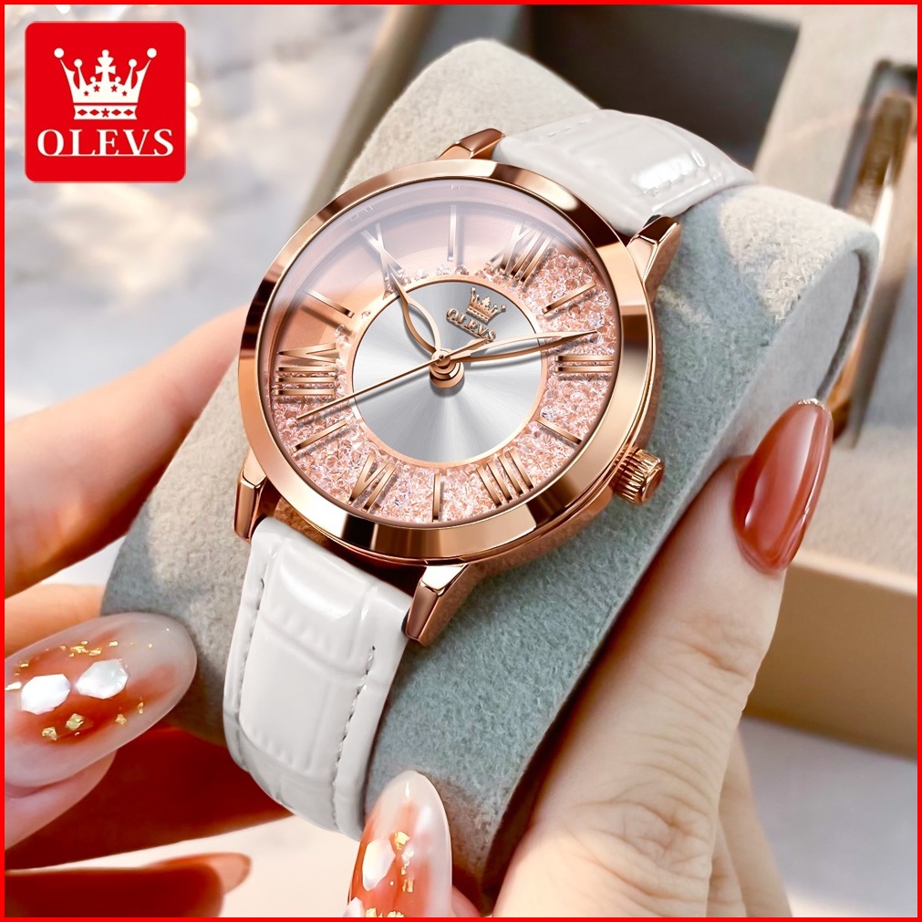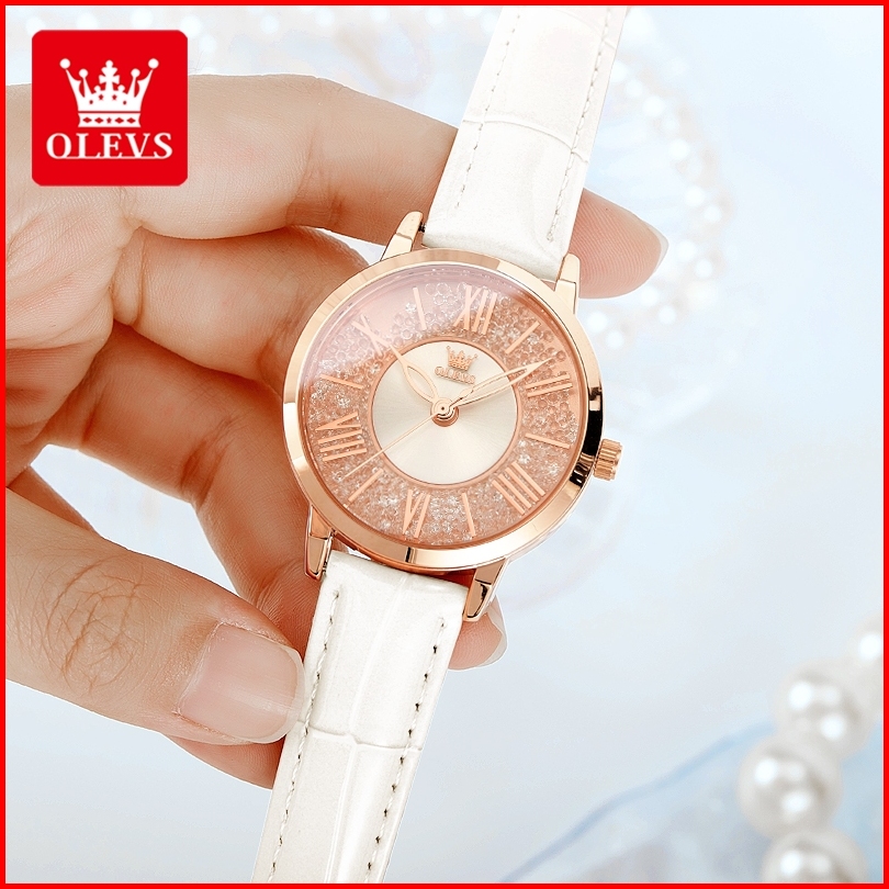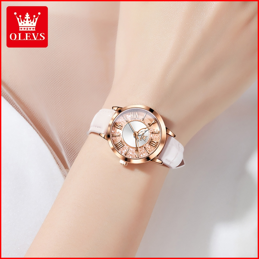 Olevs Jam Tangan Wanita Anti Air Original Cewek Luminous Fashion Kulit Tali Women Watch Model 5539