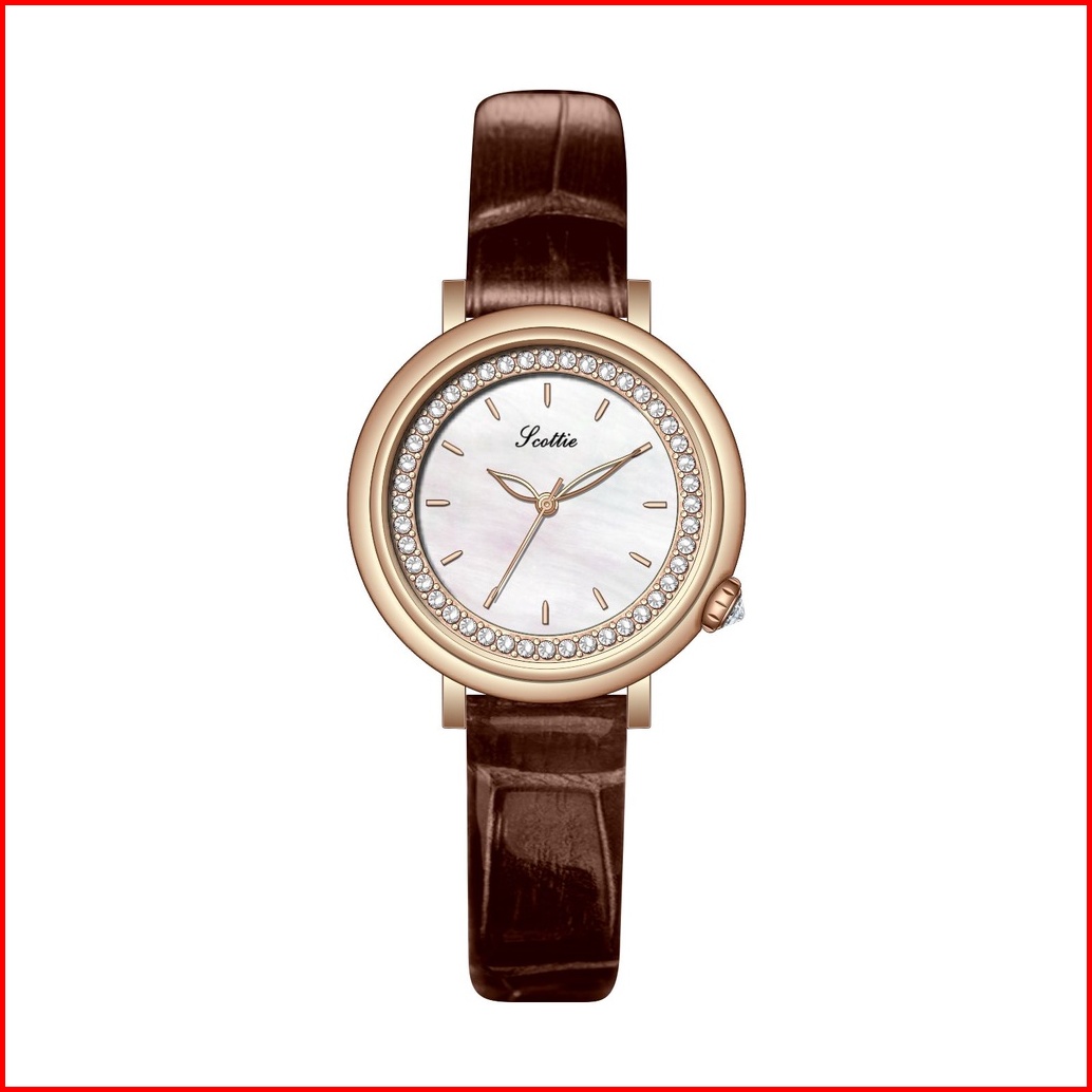 Scottie Jam Tangan Wanita Palmer Calfskin Leather Strap Kulit Asli Elegant Tahan Air Original