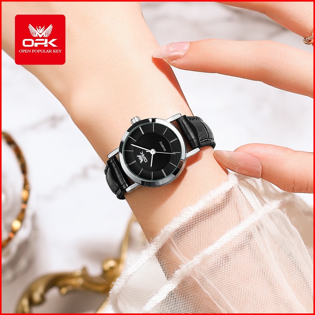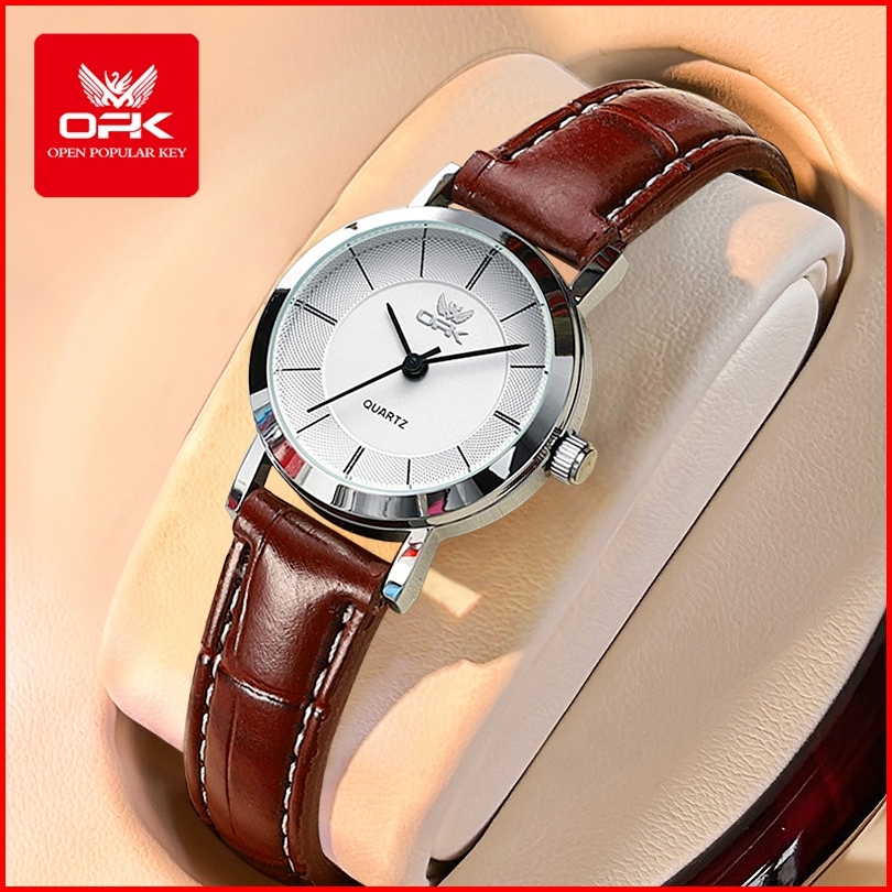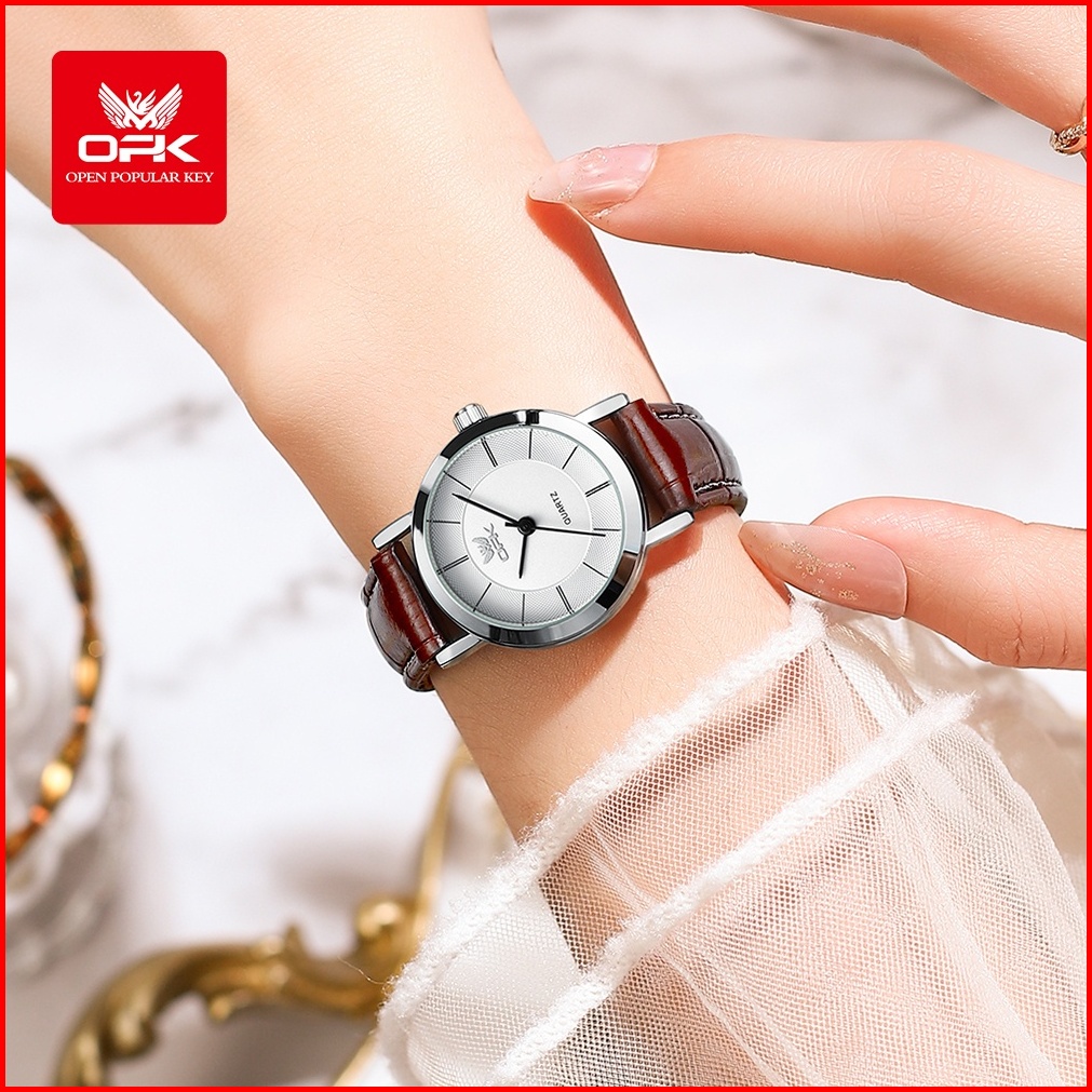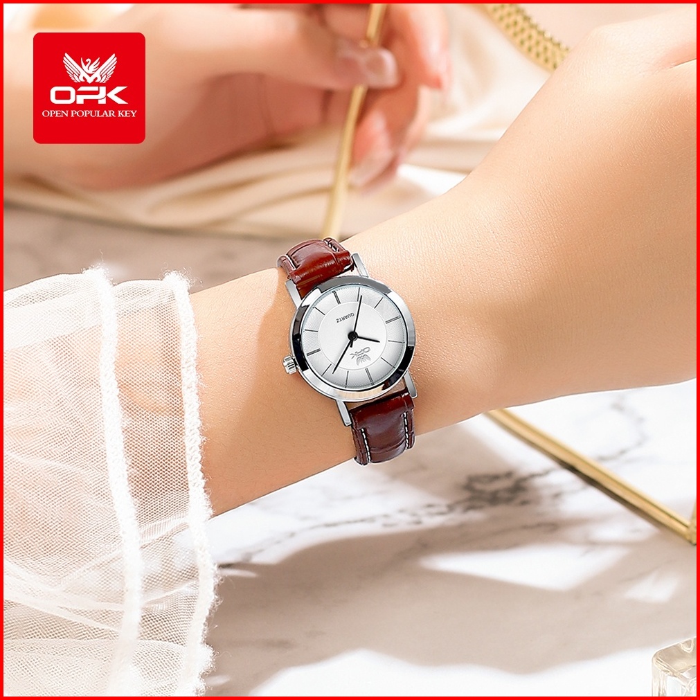 Opk Jam Tangan Wanita Kekinian Terbaru Anti Air Original Kecil Tali Kulit Cewek Elegan Women Watch Model 6019