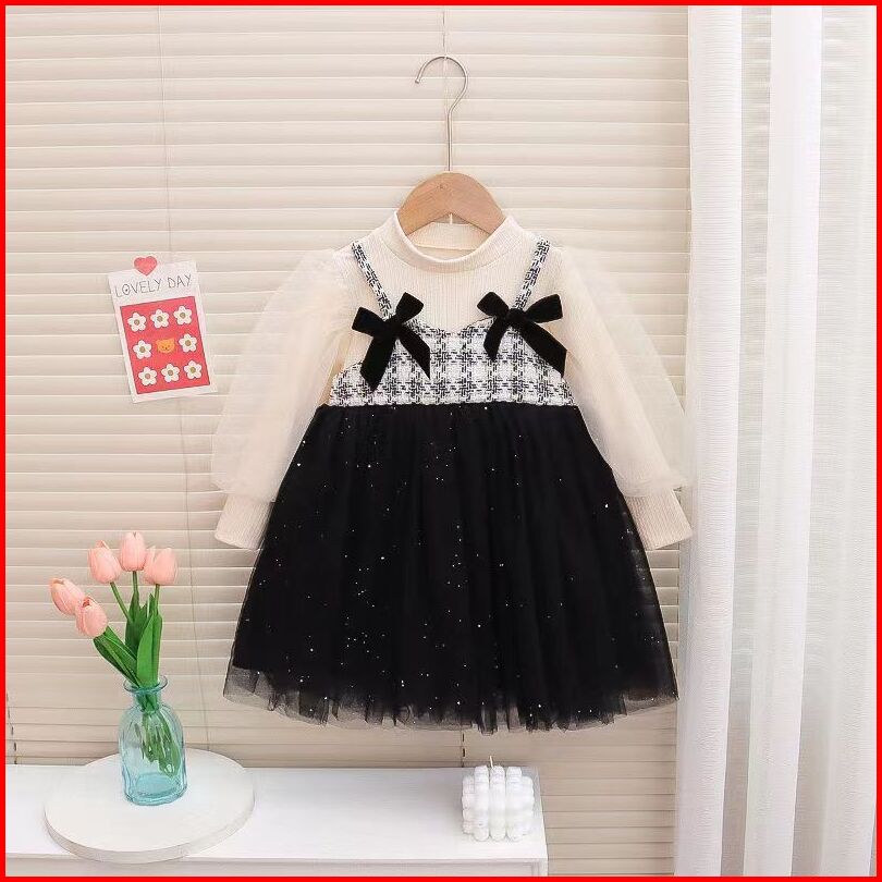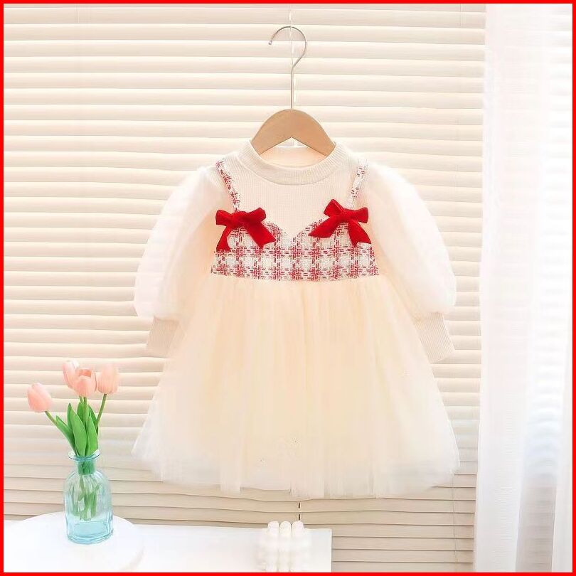 Twinkle Dress Anak Perempuan Lengan Panjang Bahan Katun Tutu Motif Polos Korean Style Usia 1-4 Tahun