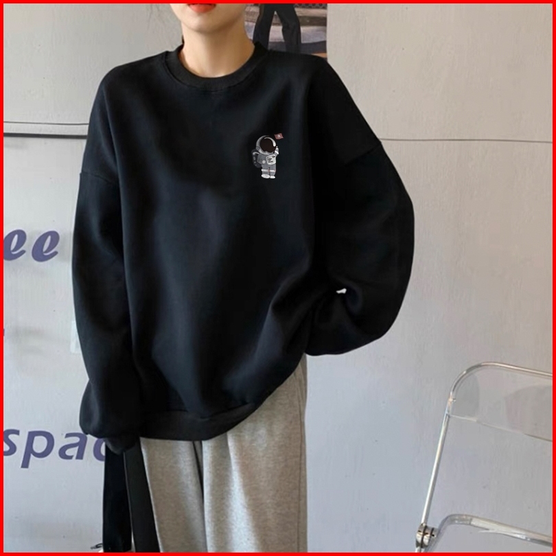 Forteid Sweater Hitam Pria The Astronaut Switer A0124 Switer Wanita Oversize Kaos Korean Style Sweater Oversize Crewneck