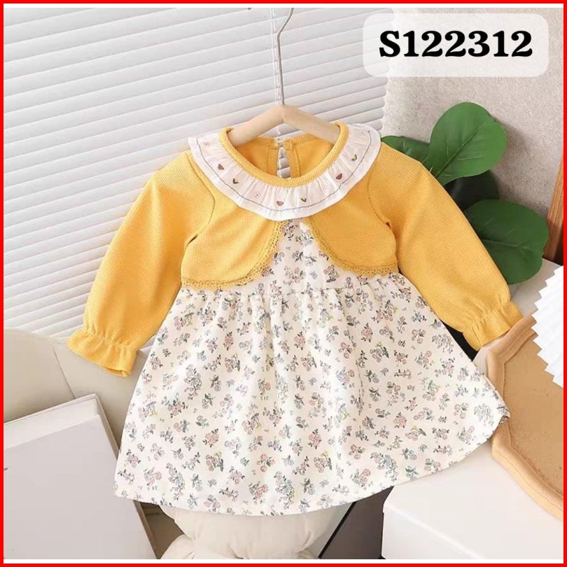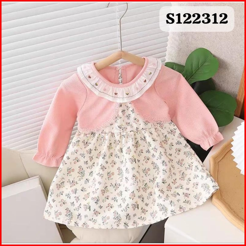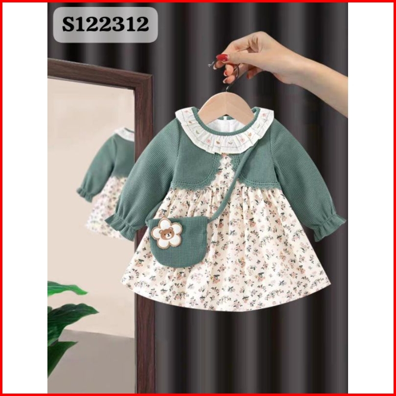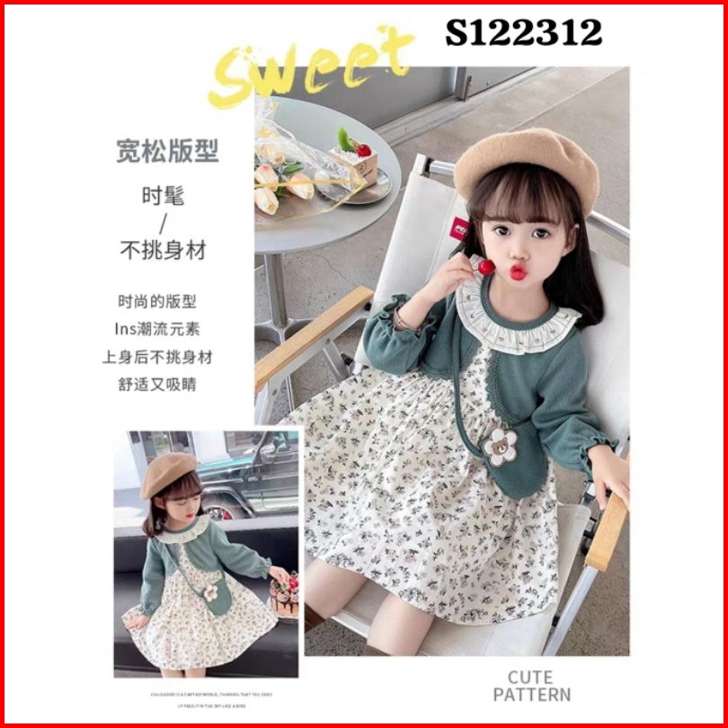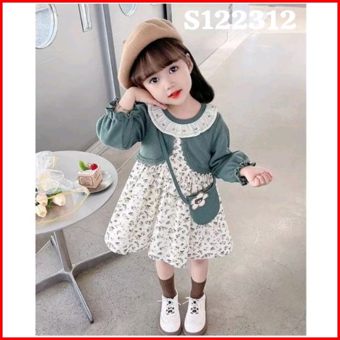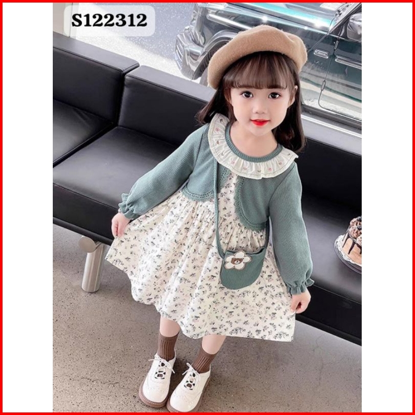 Inesra - Fashion Dress Gaun Lengan Panjang Anak Perempuan Katun Rajut Linen