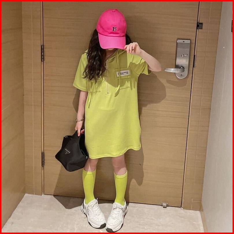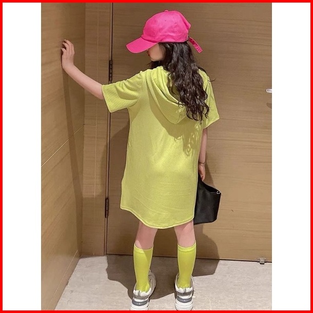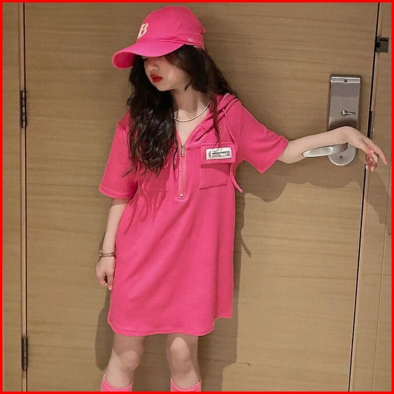 Kh2-20 Dress Hoddie Anak Perempuan Terusan Gaun Anak Lengan Pendek Topi Baju Anak Tanggung
