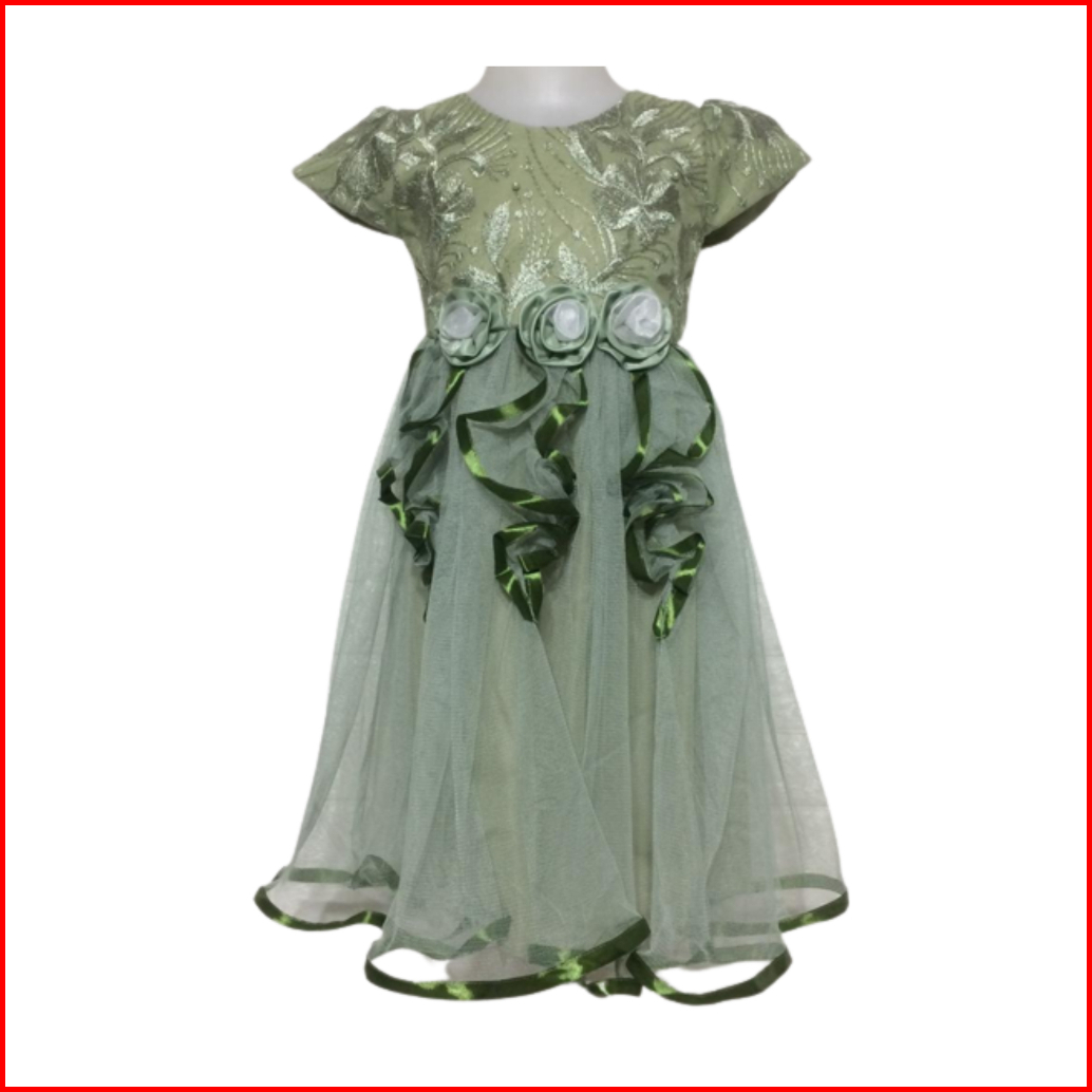 Dress Anak Ribbon Krct Baju Ulang Tahun Gaun Brukat Usia 4 - 9 Th