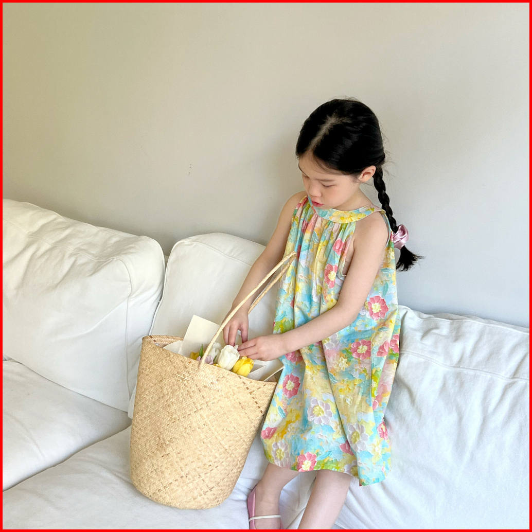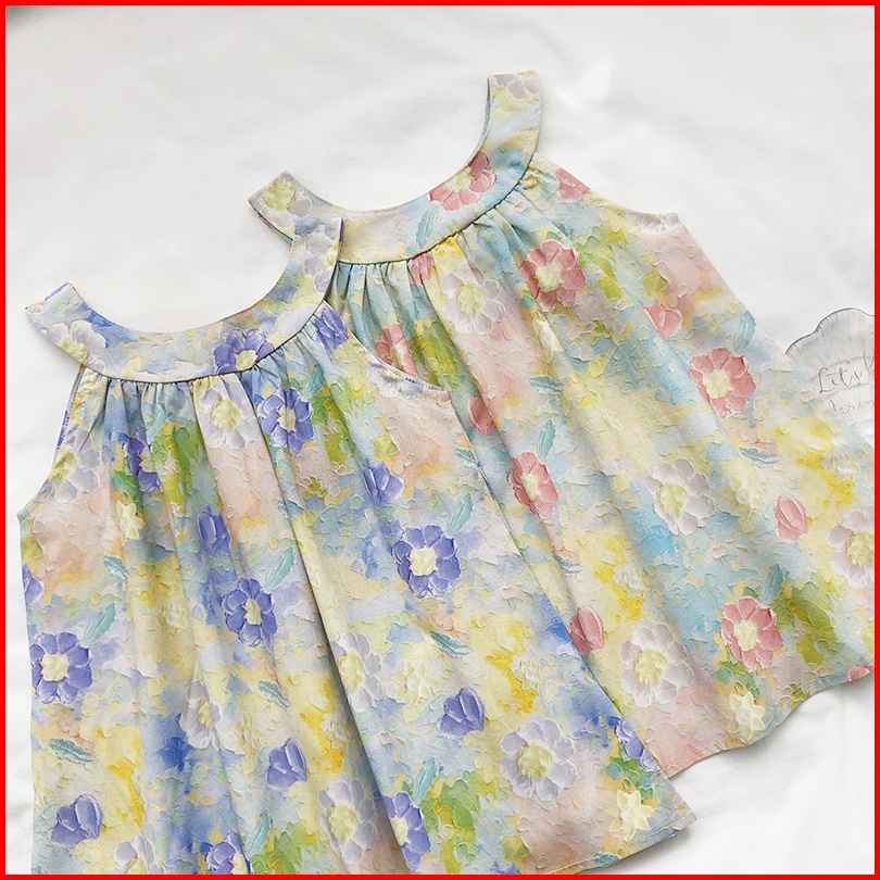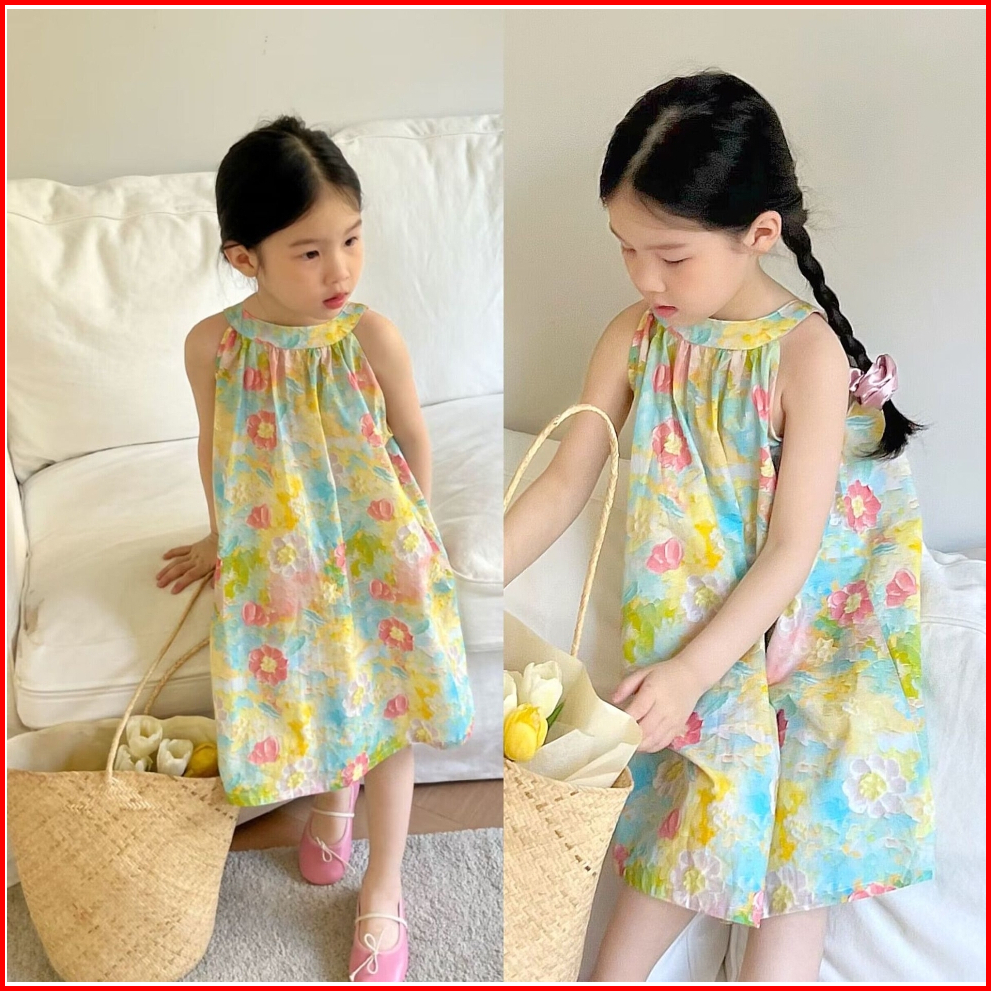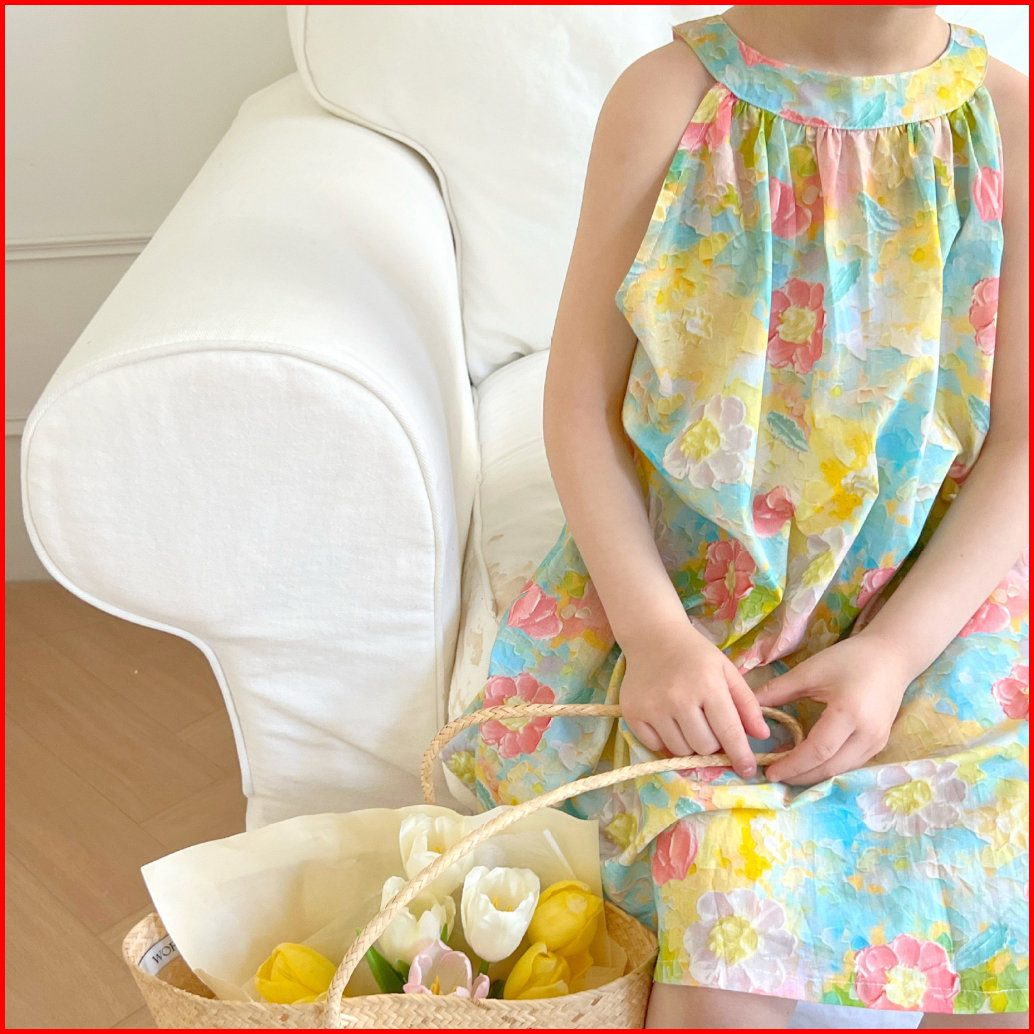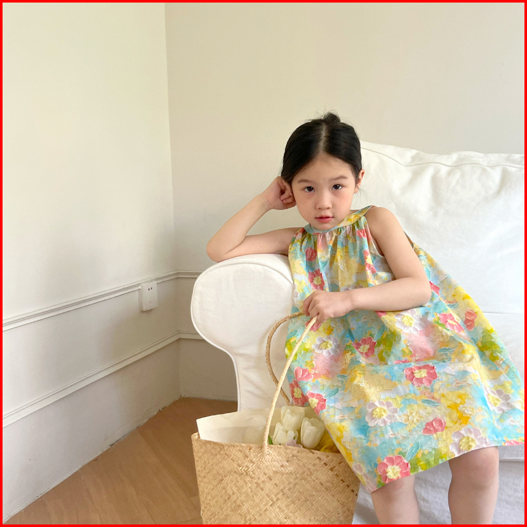 Haasya Kids 2-7 Tahun Pakaian Anak-anak Usia Gaun Tanpa Lengan Anak Perempuan Gaun Putri Suspender Cetak Lukisan Cat Min