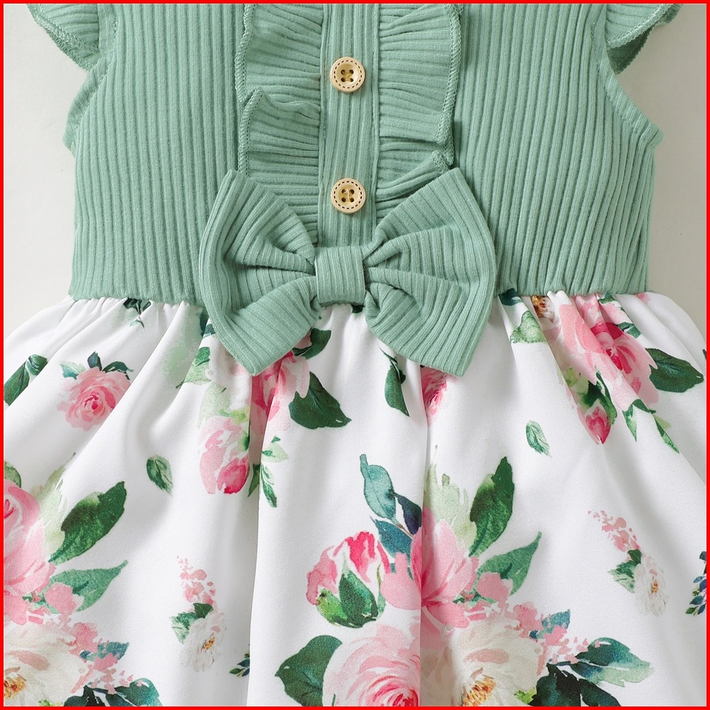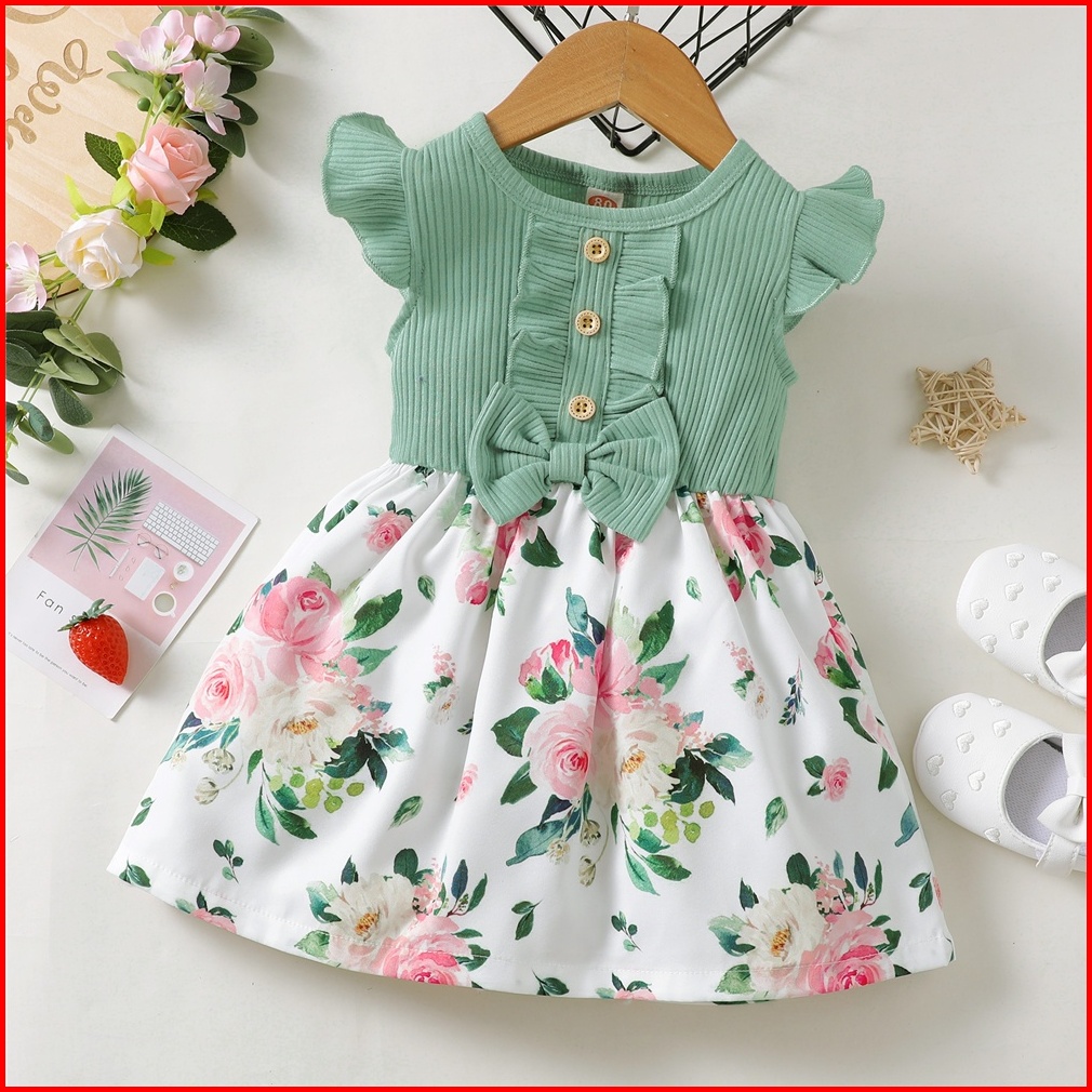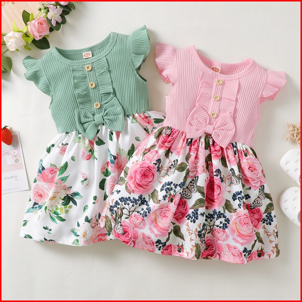 Haasya Kids 1-5 Tahun Anak-anak Perempuan Bayi Perempuan Gaun Kapas Lengan Terbang Bunga Cetak A-line Gaun Lucu Musim Pa