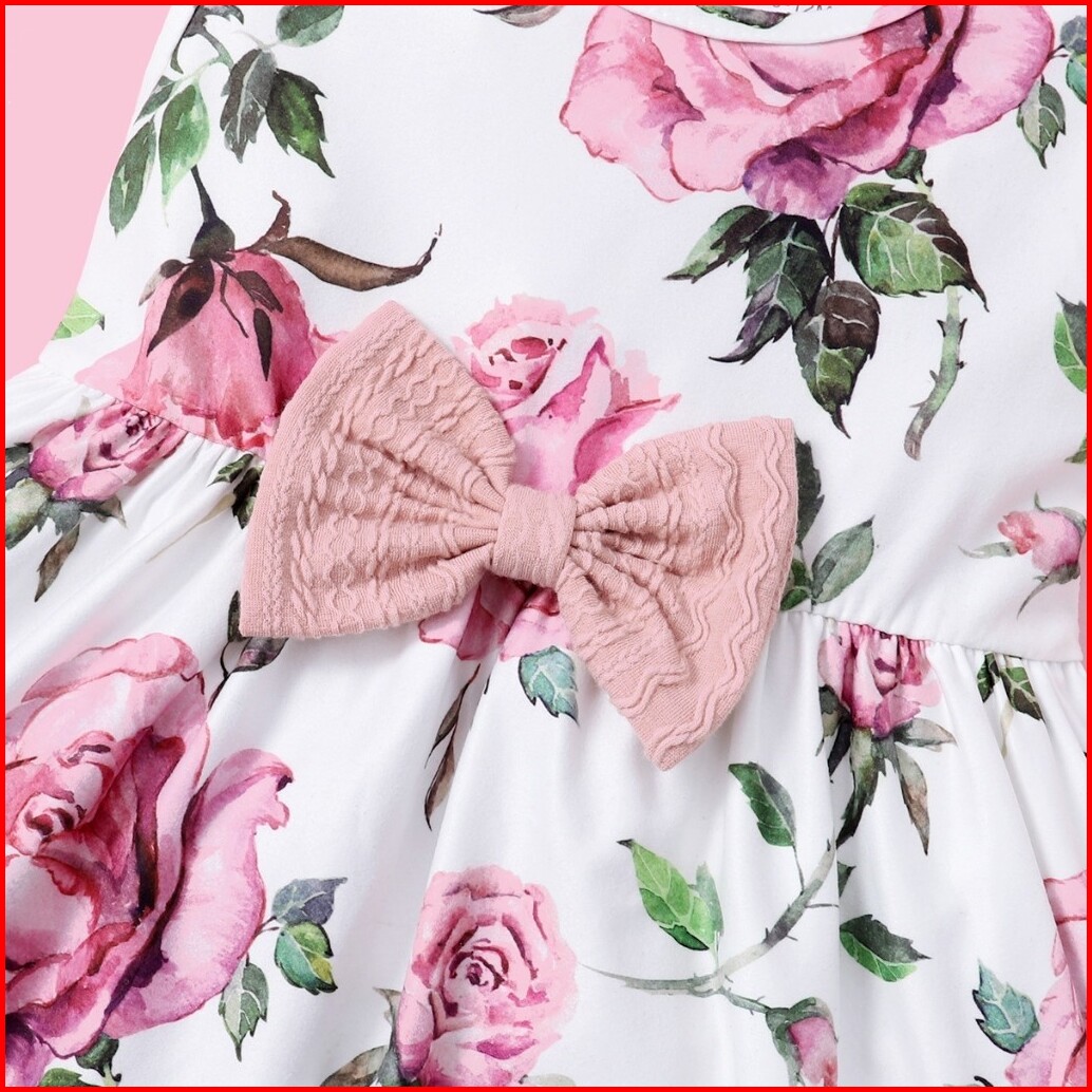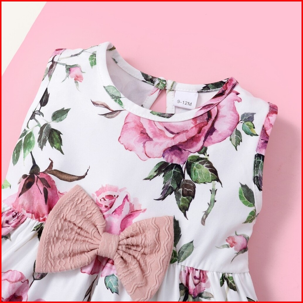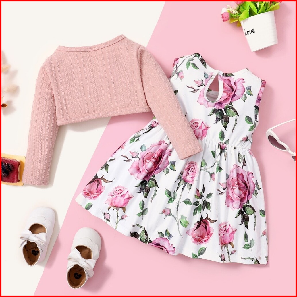 Haasya Kids 0-3 Years Dress For Kid Girl Infant Baby Girl 2pcs Dress Set Solid Color Ribbed Overcoat With Floral Sleevel