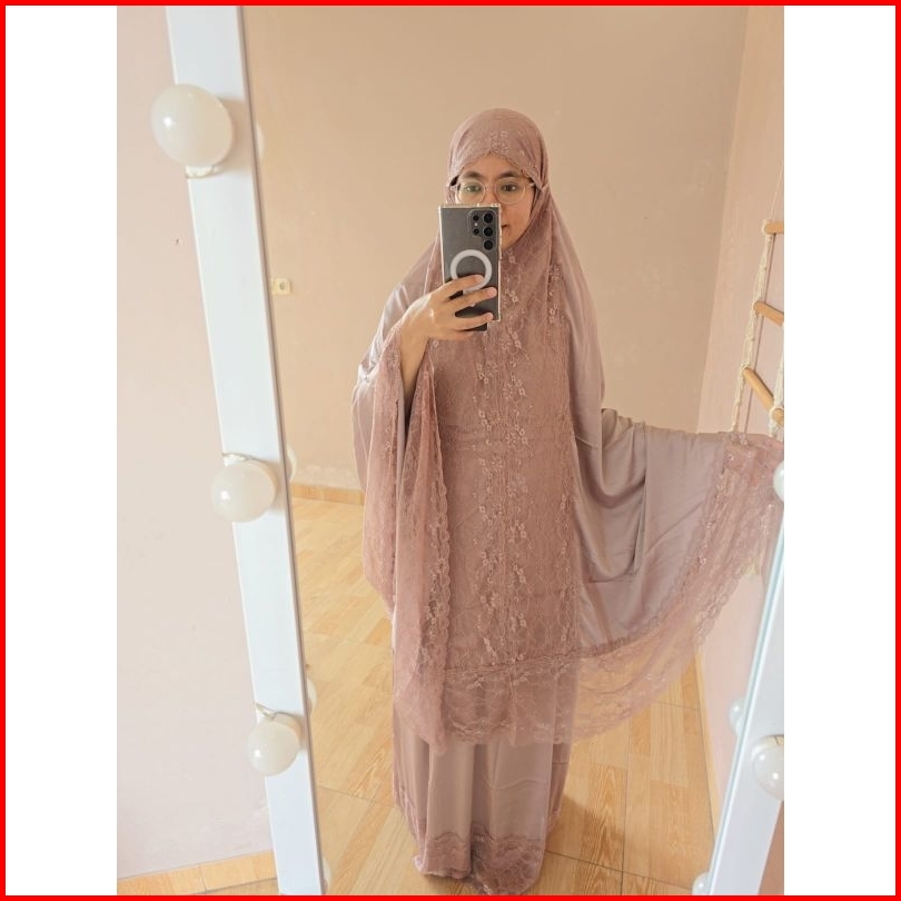 Mukena Mewah Renda Dewasa Silky Premium Daily 2 In 1 Andin Serries Jumbo Adem Lembut