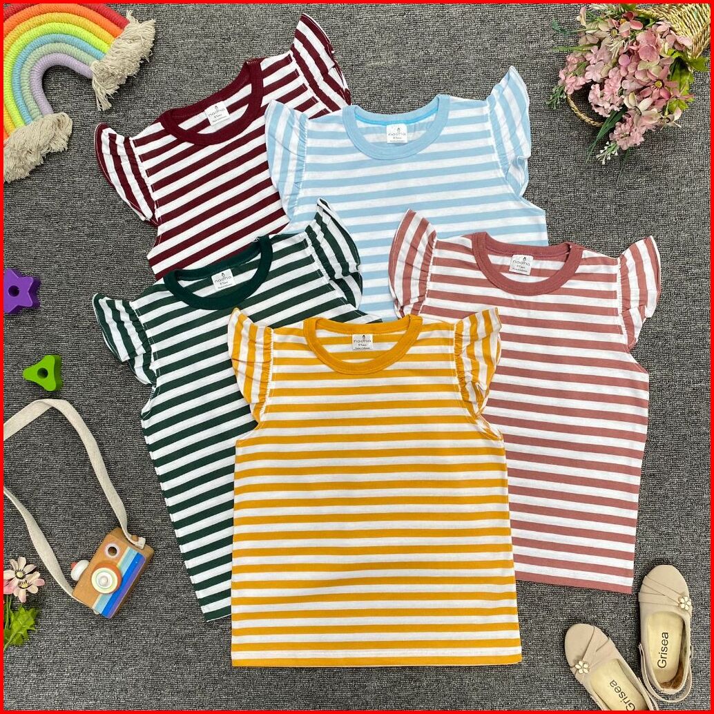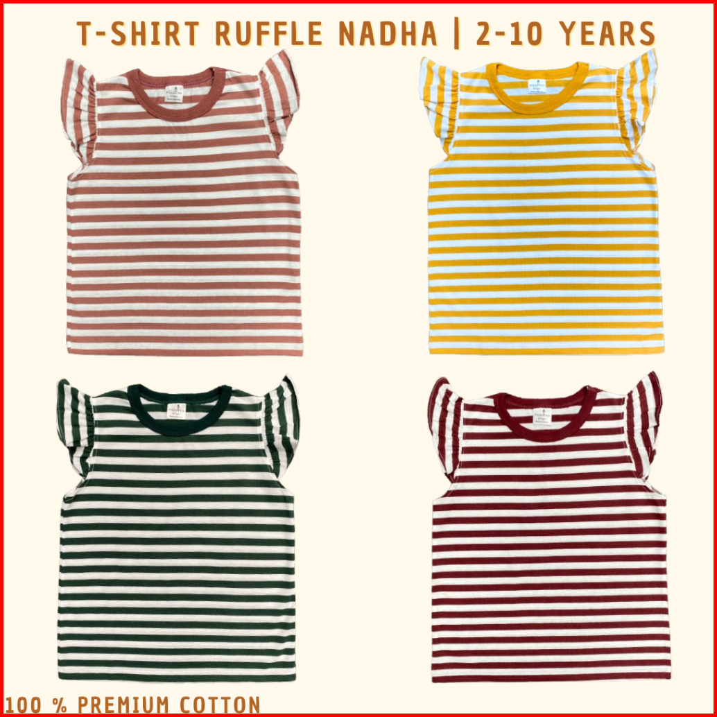 Anakmamibabykids Kaos Anak Pendek Salur Ruffle 1 Cm Olivia Kaos Salur Anak Ruffle Kaos Anak Perempuan Kaos Anak Cewe Sal