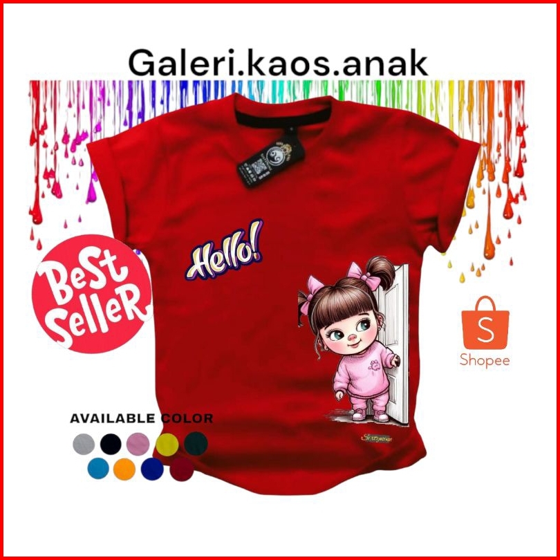 Baju Atasan Kaos Anak Perempuan Bahan Cotton 30s Motif Baby Hello