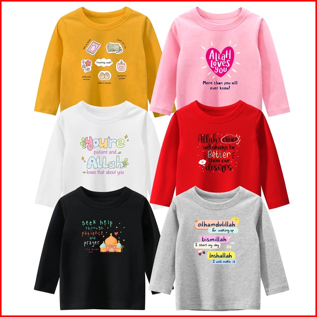 Lovelygolden - Kaos Lengan Panjang Anak Cewek Motif Muslim Bahan Cotton Combed Usia 1 Tahun Sampai Remaja Diatas 12 Tahu