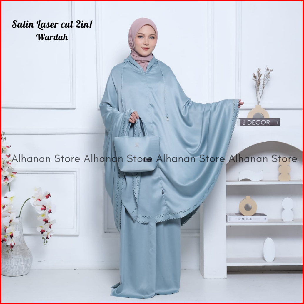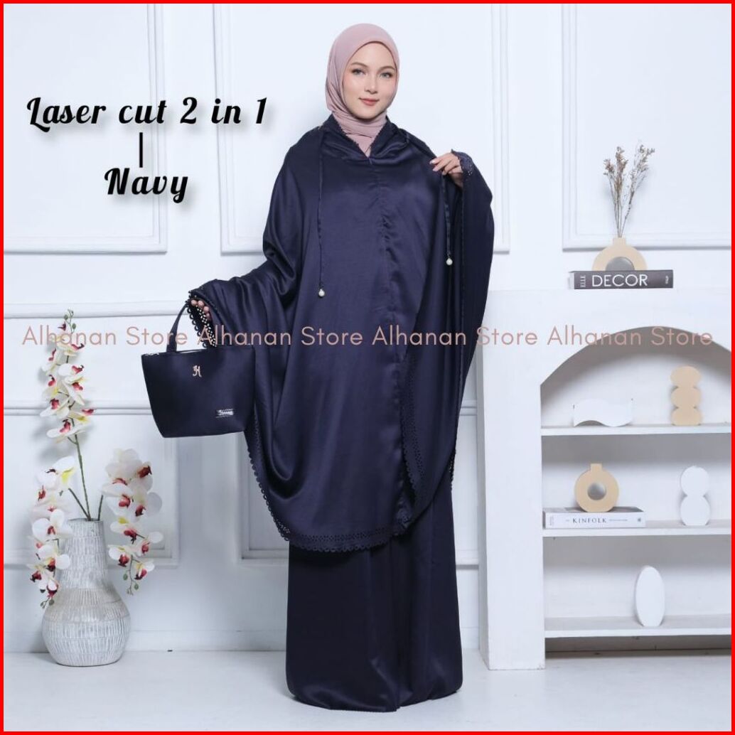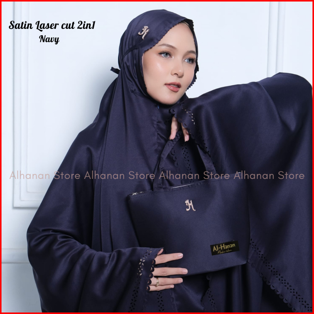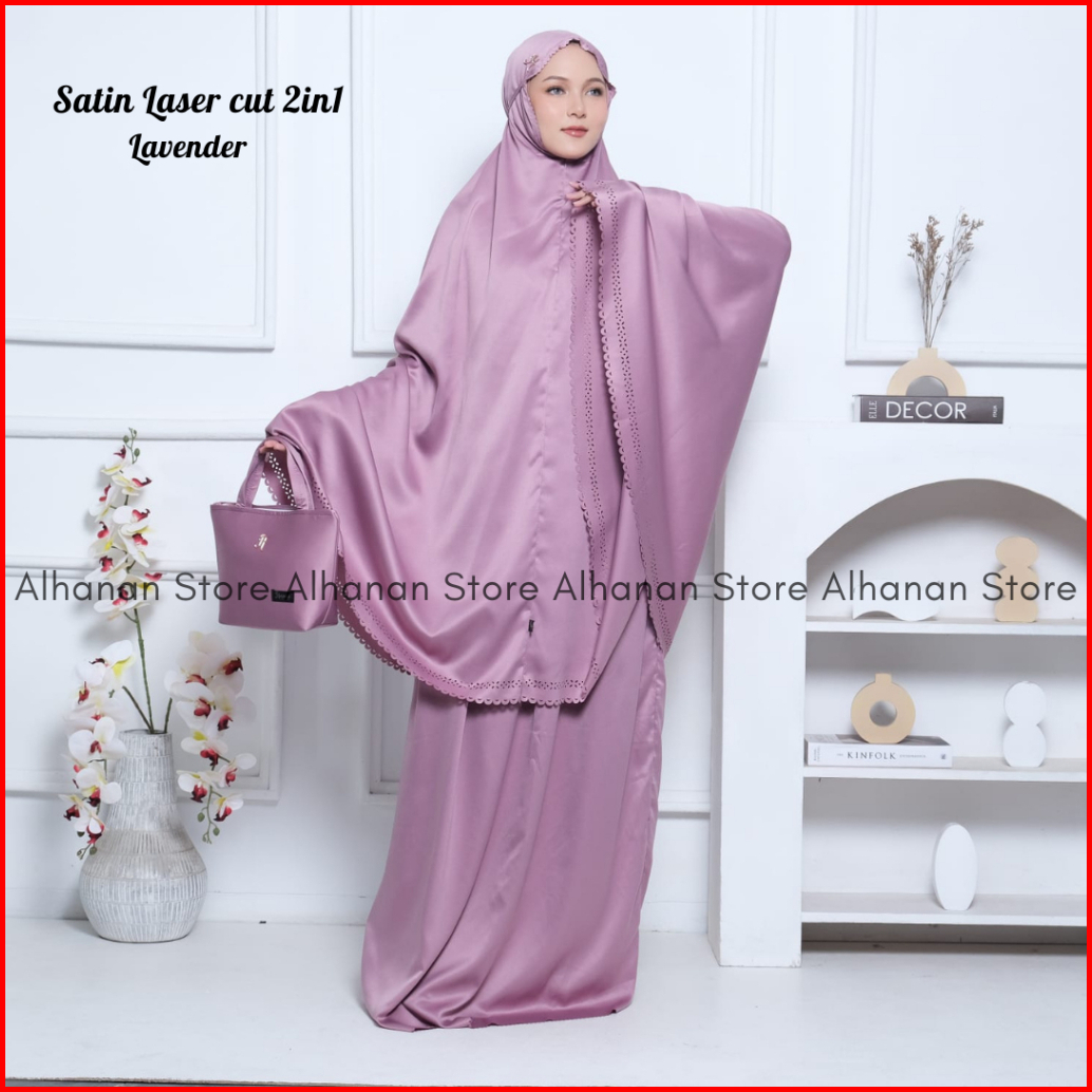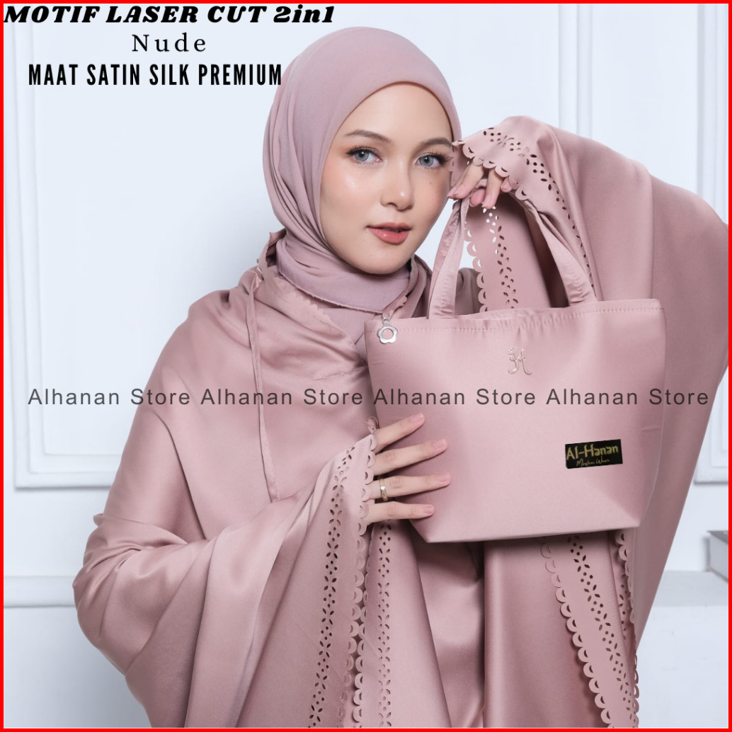 Alhanan - Mukena Dewasa Satin Silk Premium Travel Jumbo Traveling Laser Cut 2in1
