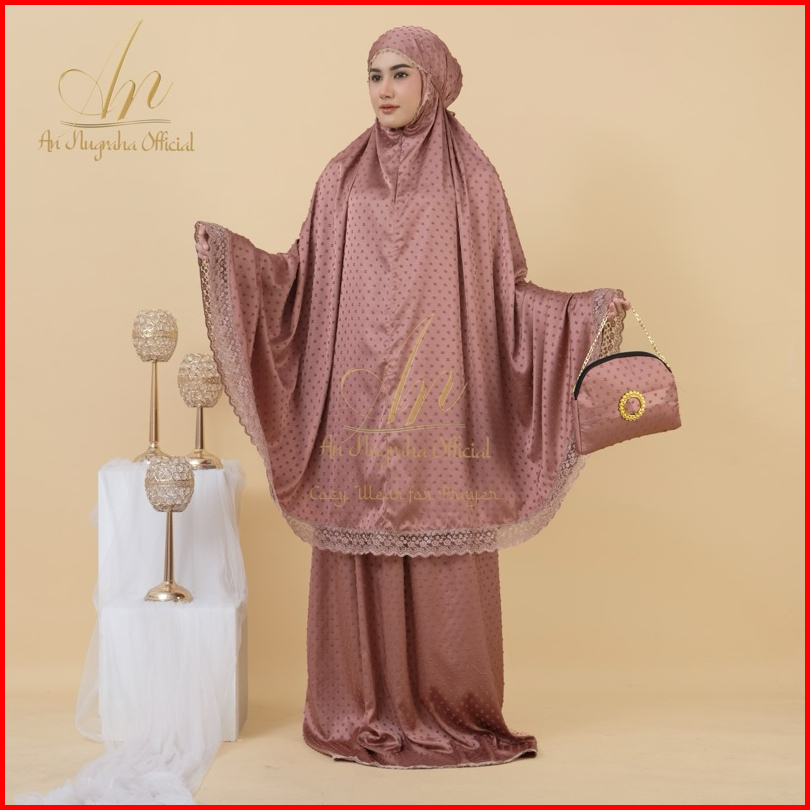 Mukena Dewasa Mewah 2in1 Slik Uragiri Dot Premium Armani Renda Bordir