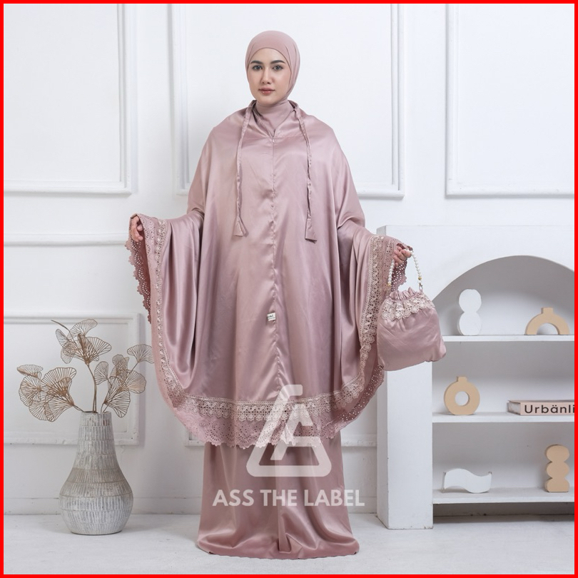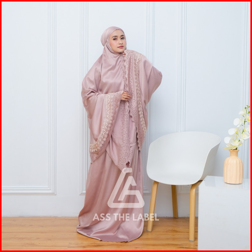 Assthelabel - Mukena Dewasa Sutra Silk Premium Laser Cut 2in1 Renda Mewah Gamila Series