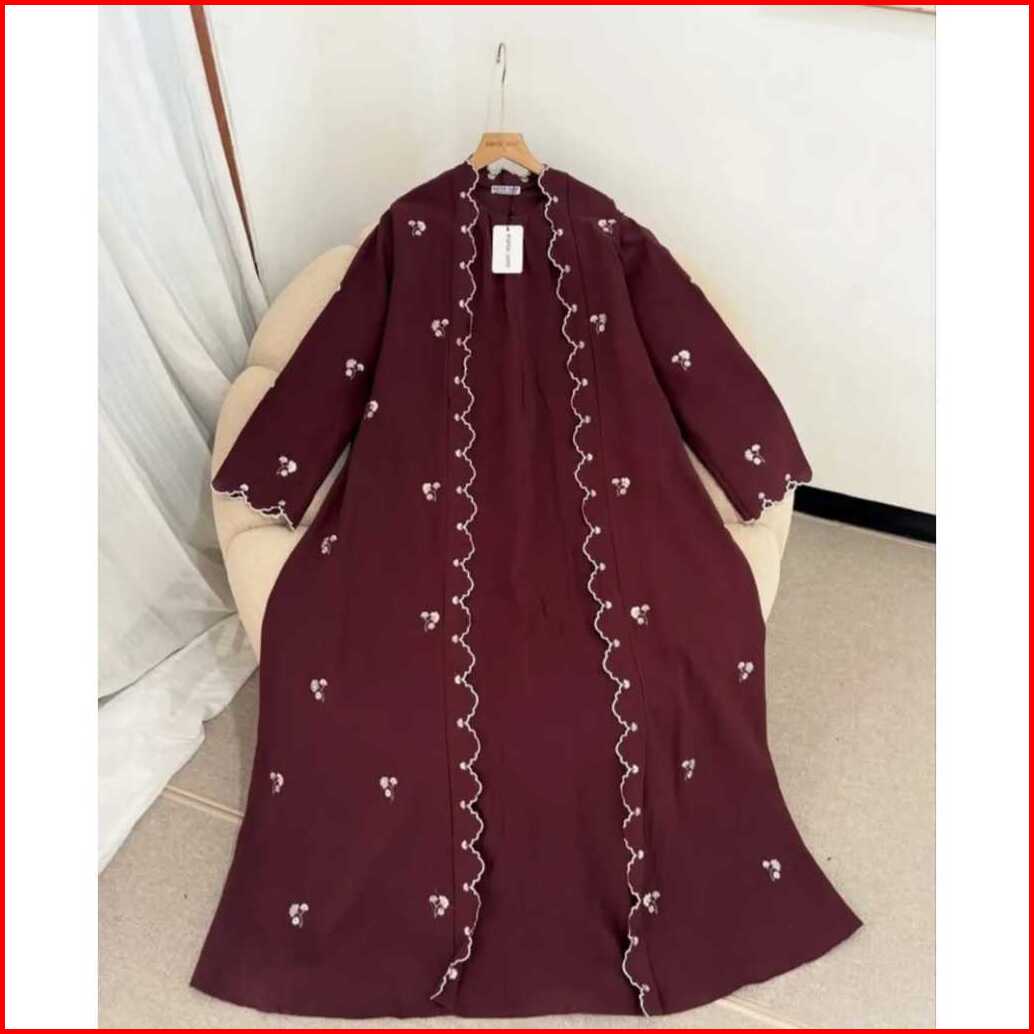Aurora Abaya Ceruty Babydoll Full Puring Premium Dress Simpel Elegan Mewah Gamis Kondangan