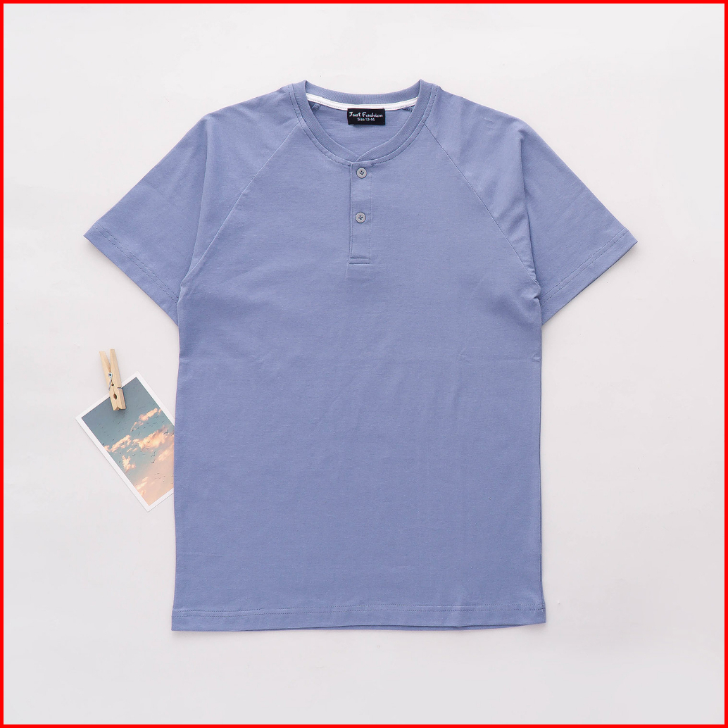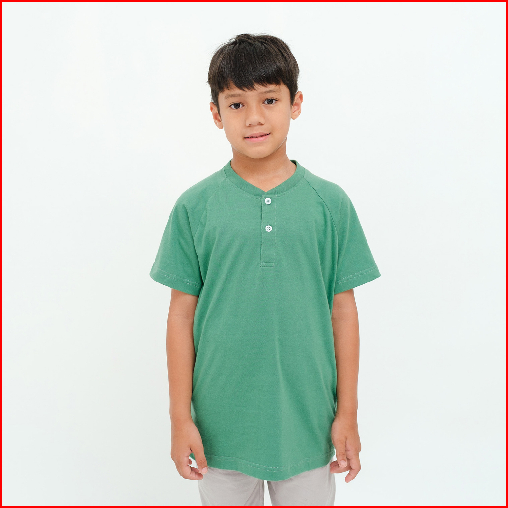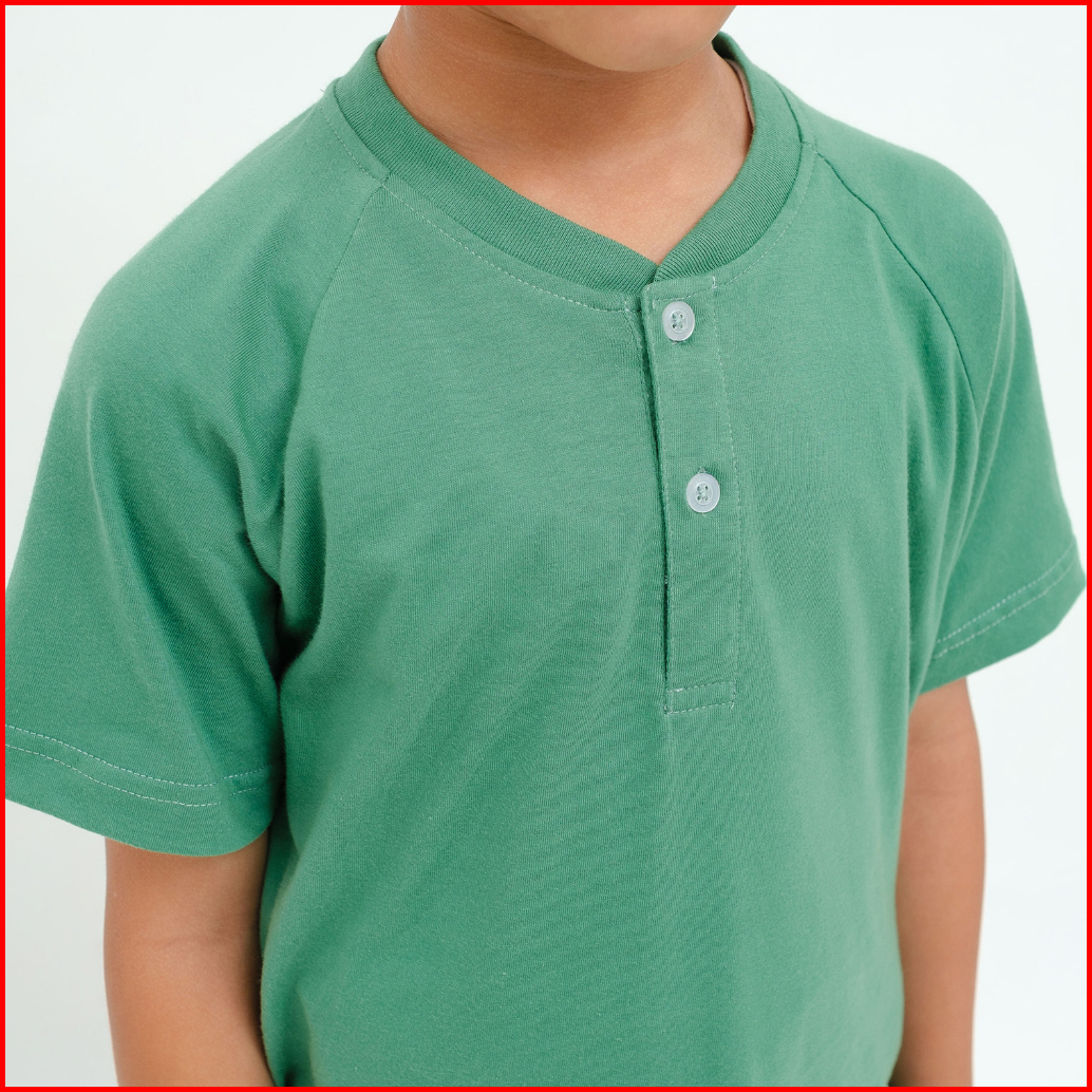 Atasan Kaos Raglan Kancing Depan Lengan Pendek Anak Laki Laki Remaja Tanggung 6 8 10 12 14 Thn Polos