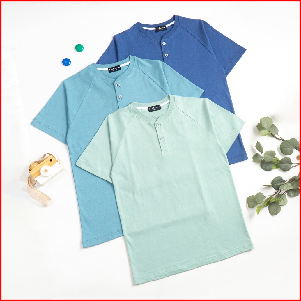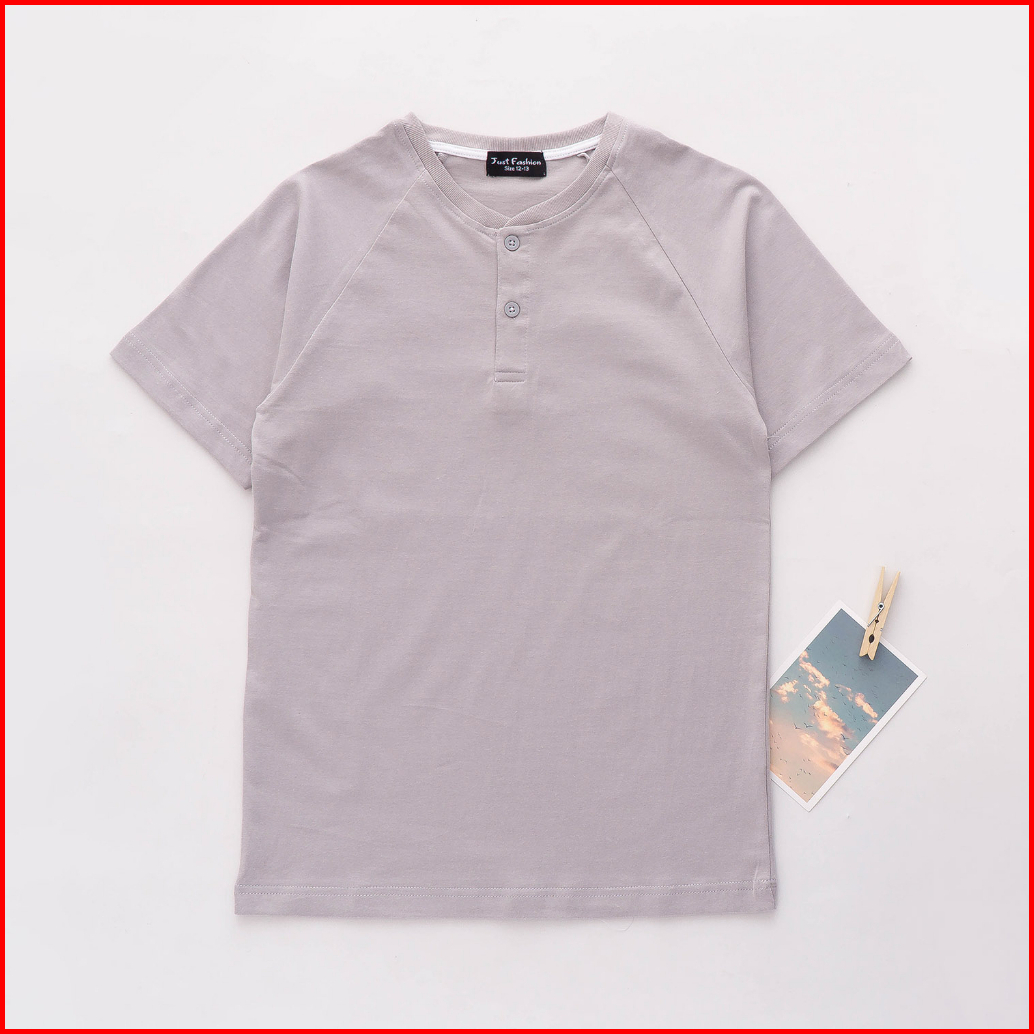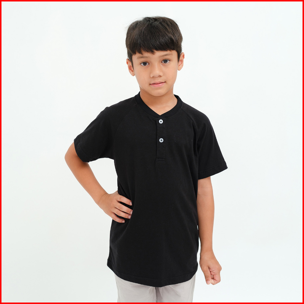 Atasan Kaos Raglan Kancing Depan Lengan Pendek Anak Laki Laki Remaja Tanggung 6 8 10 12 14 Thn Polos