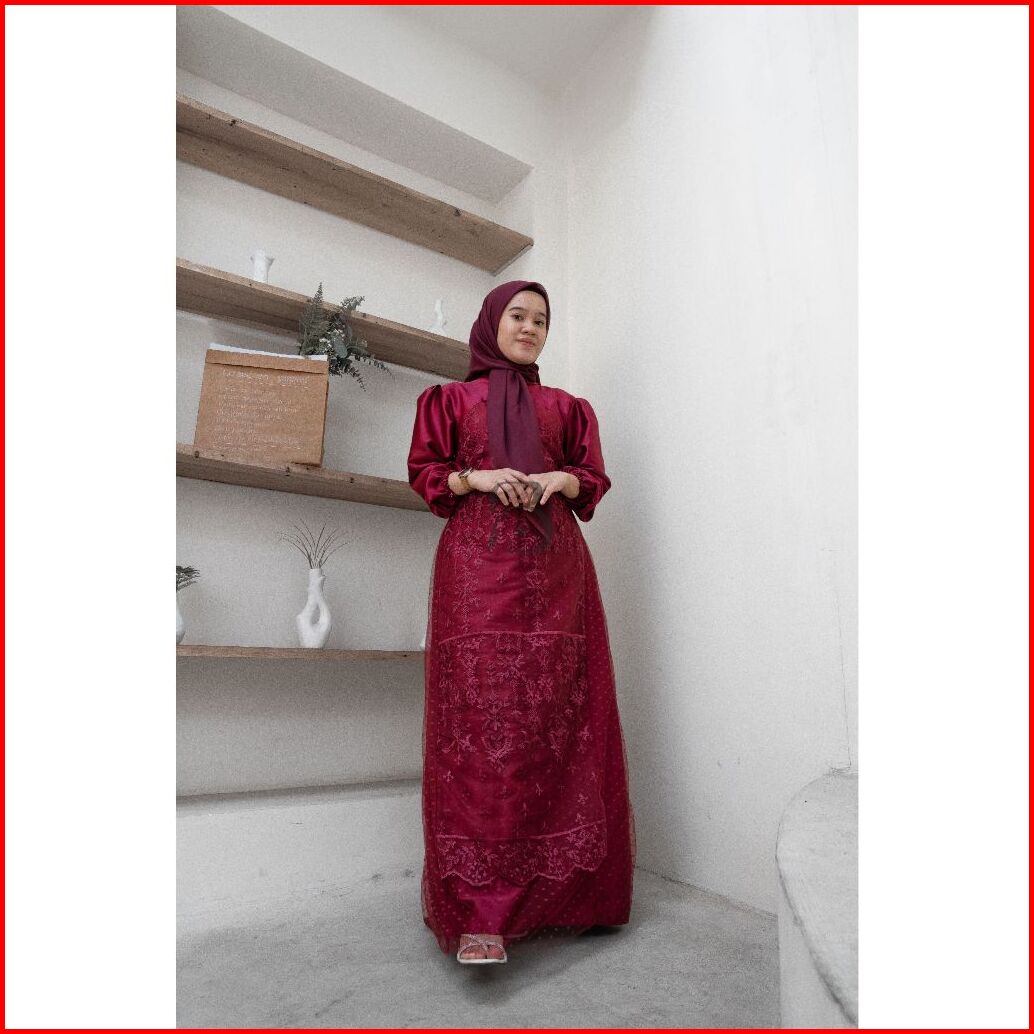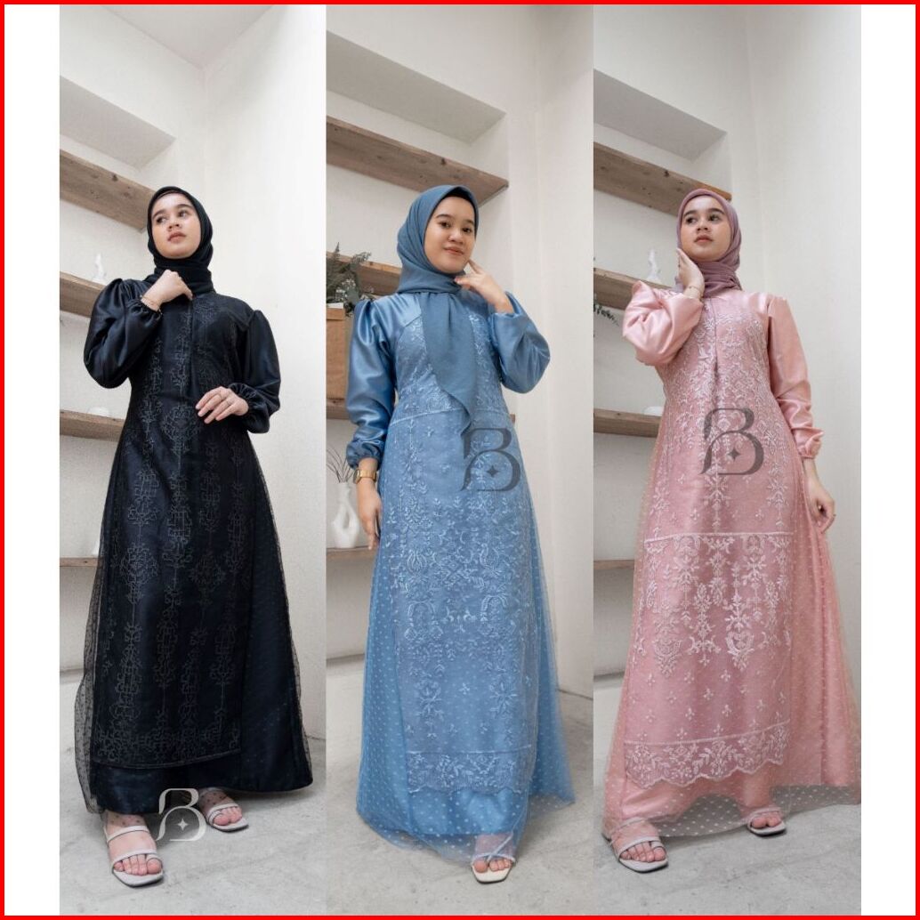 Nayla Dress Set Outer Ready Brukat Baju Kondangan Busui Friendly Gamis Remaja Simpel Gaun Pesta Lamaran Bridesmaid Dress