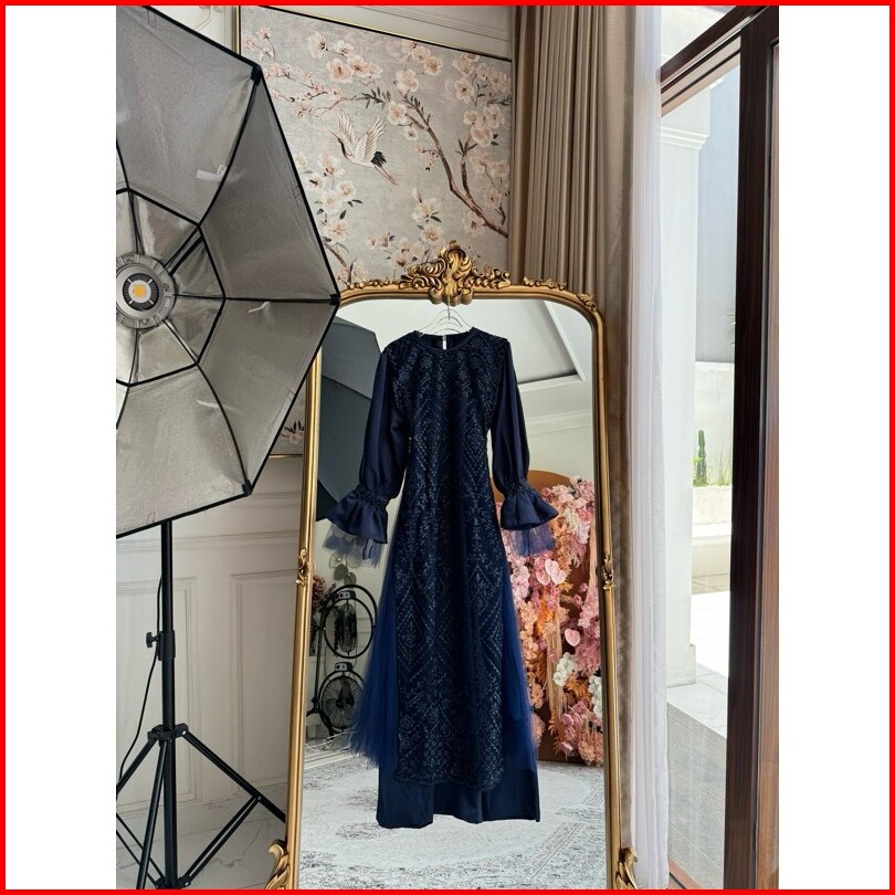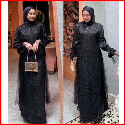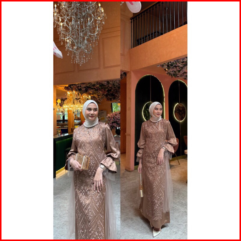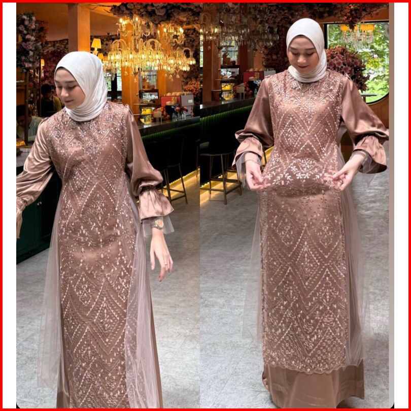 Lini Dress Tulle Gamis Brukat Kondangan Silk Premium