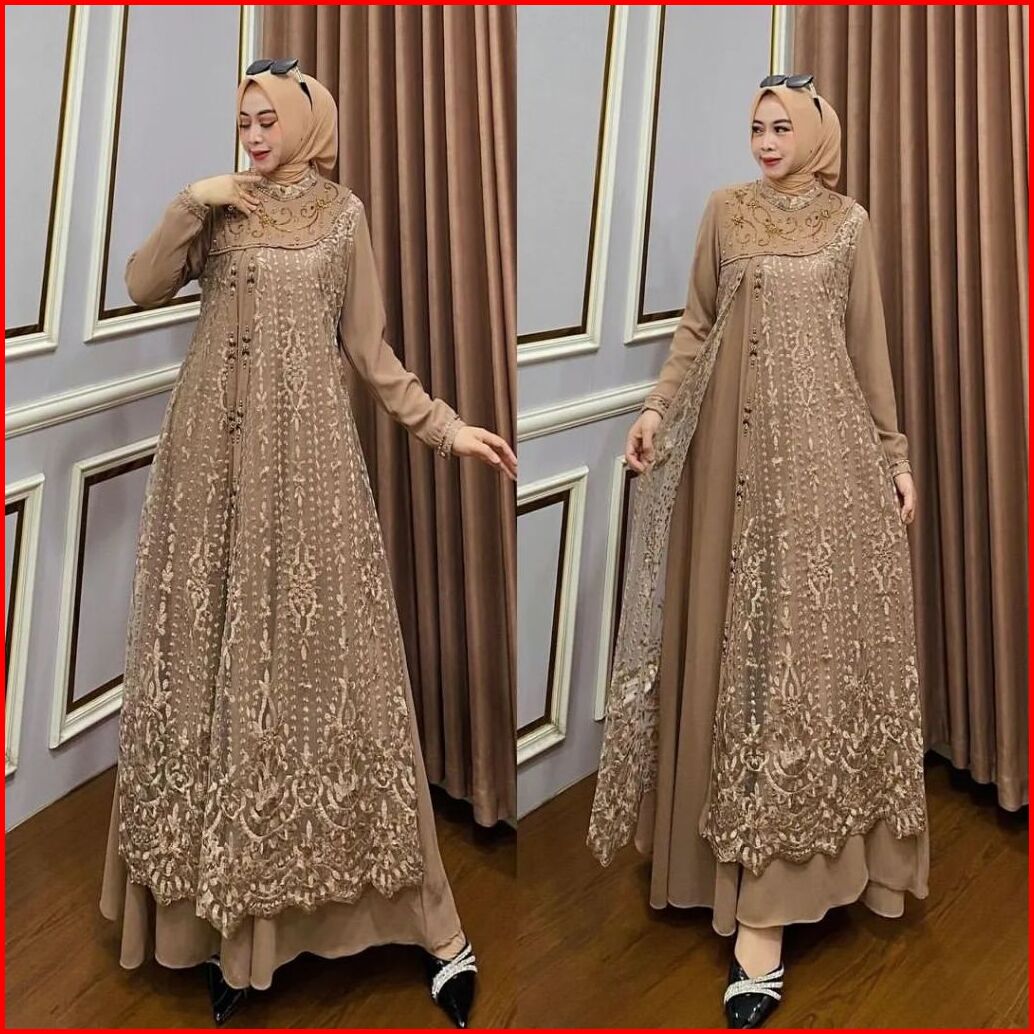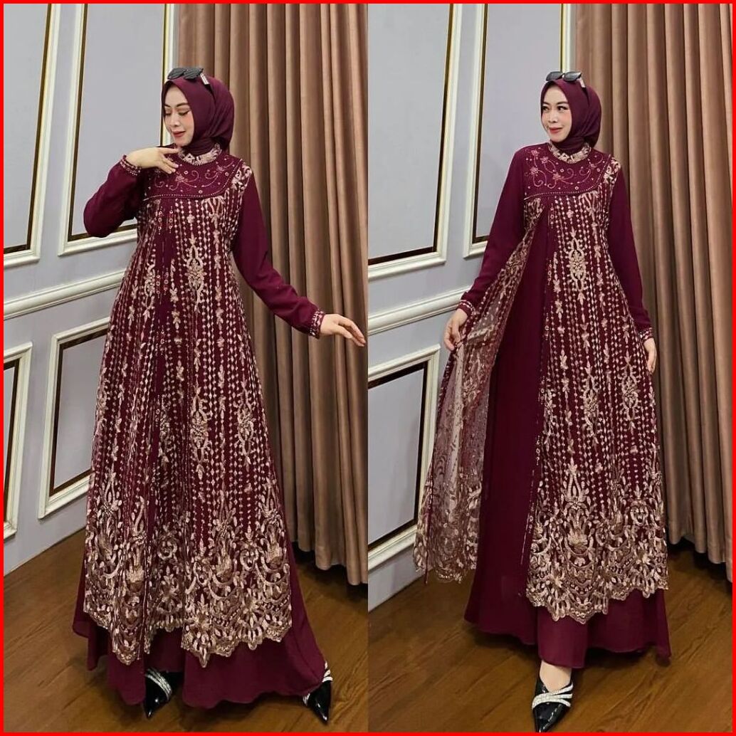 Laura Dress Impor Bahan Ceruty Mix Brukat Ootd Dress Kodangan Cantik Aoutft Pesta Model Terbaru 2024