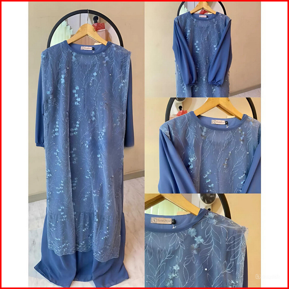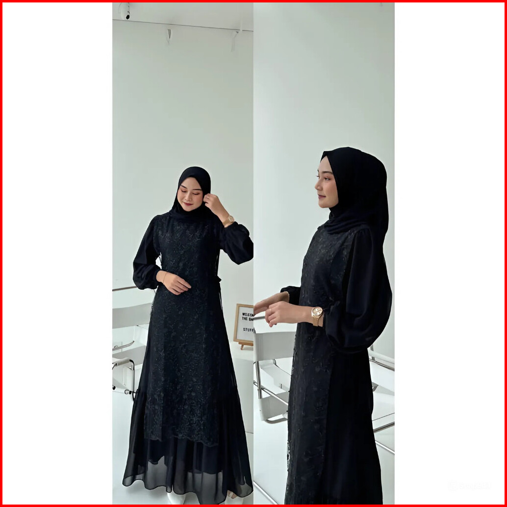 Gamis Pesta Mewah Elegan Sintia Set Outer Baju Kondangan Wanita Kekinian Dress Wanita Brukat Terbaru