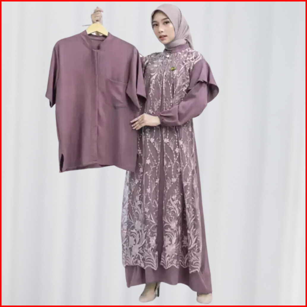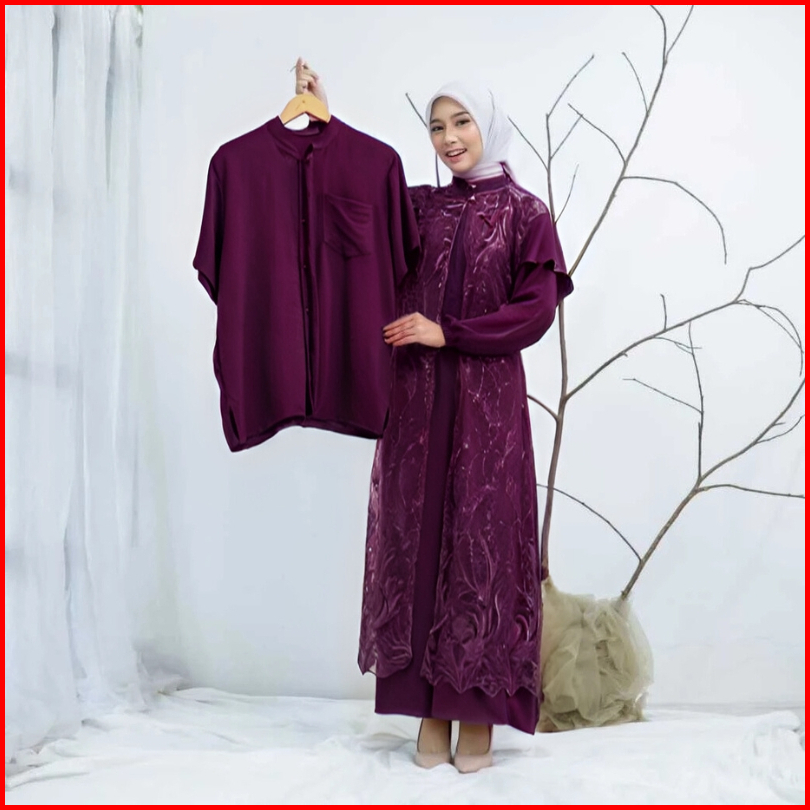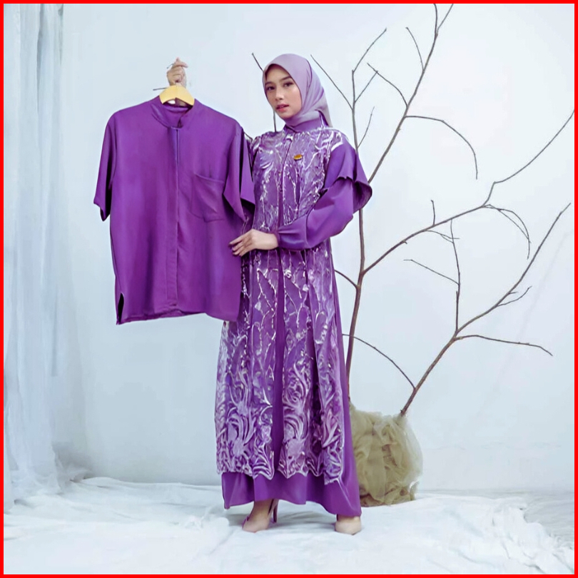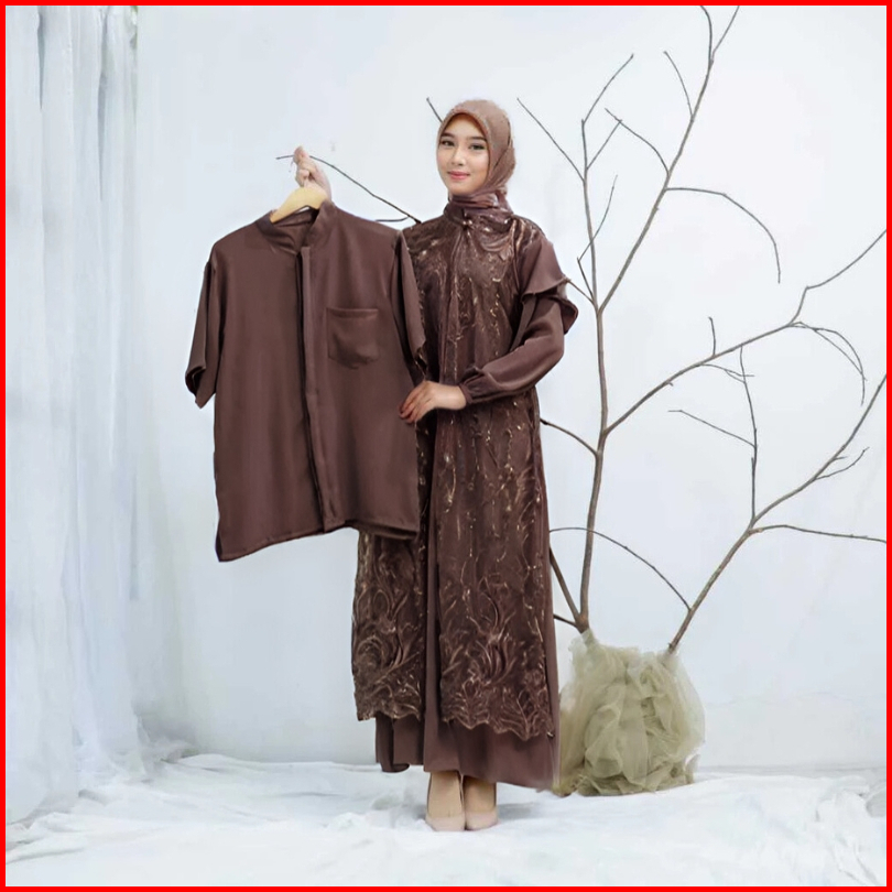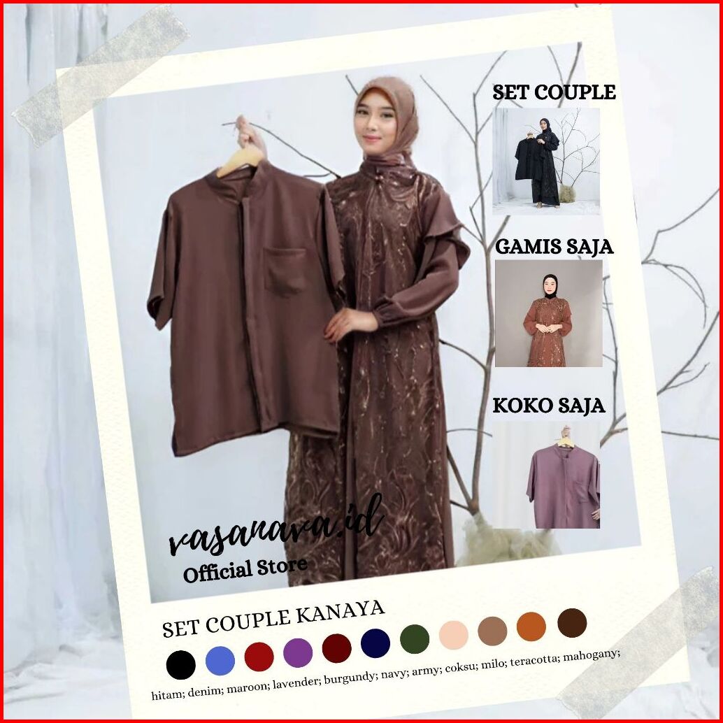 Setelan Couple Kanaya Gamis Koko Cringkle Mix Brukat Set Kondangan Lebaran Gamis Muslim Brukat Wanita