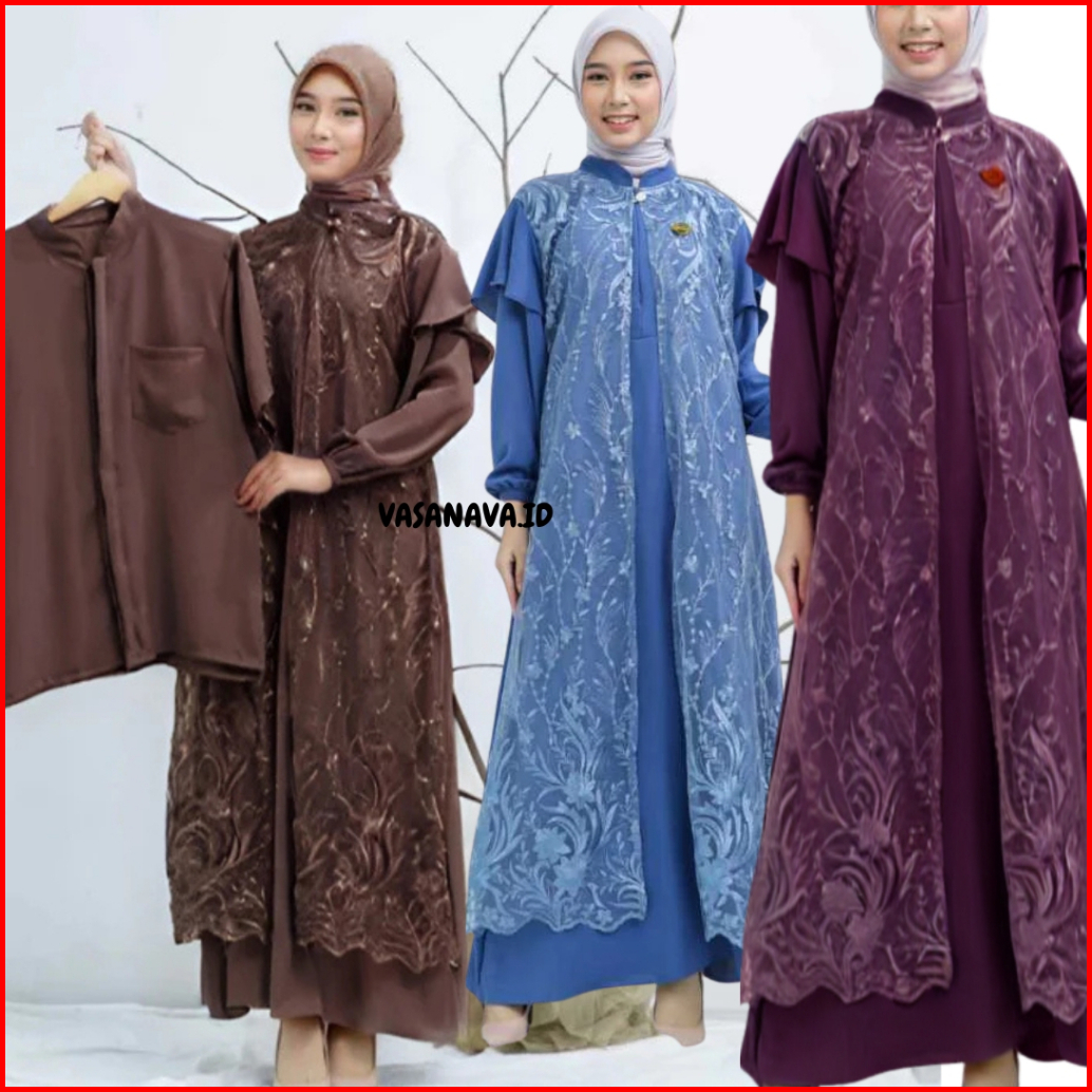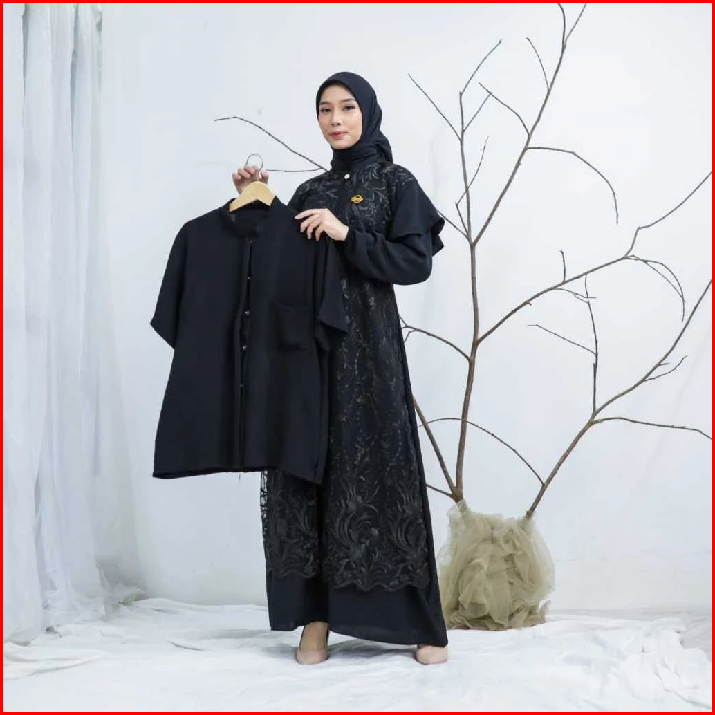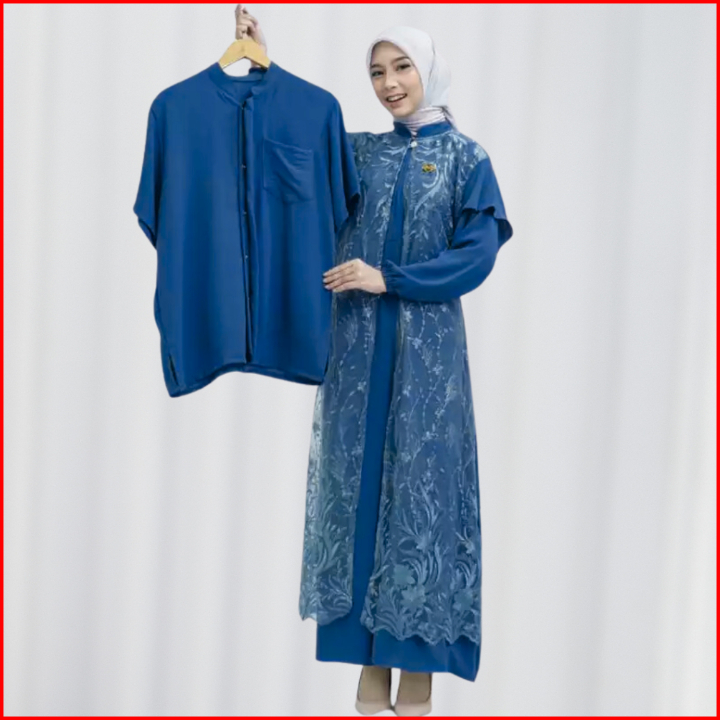 Setelan Couple Kanaya Gamis Koko Cringkle Mix Brukat Set Kondangan Lebaran Gamis Muslim Brukat Wanita