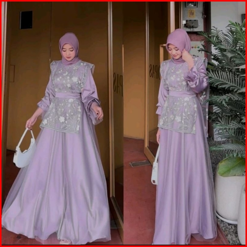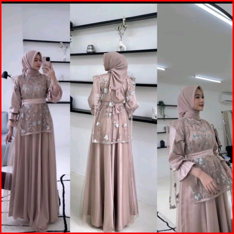 Amora Dress Outer Tille Garden Busui Friendly Gamis Muslim Wanita Kekinian Dress Kondangan Mewah Simpel Elegant Gamis Re