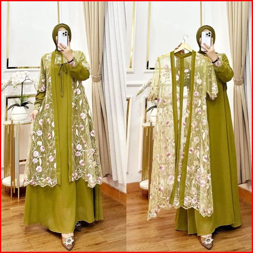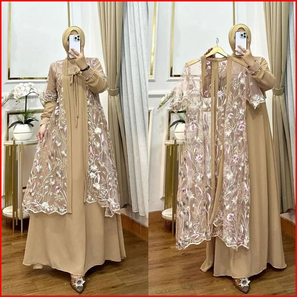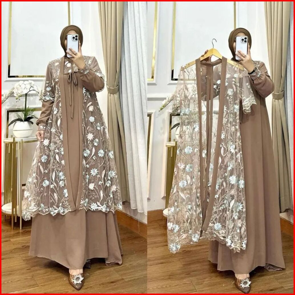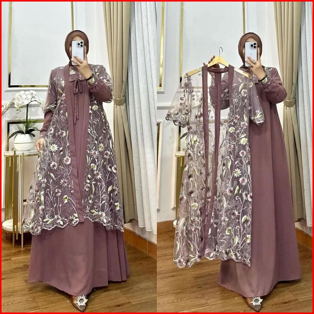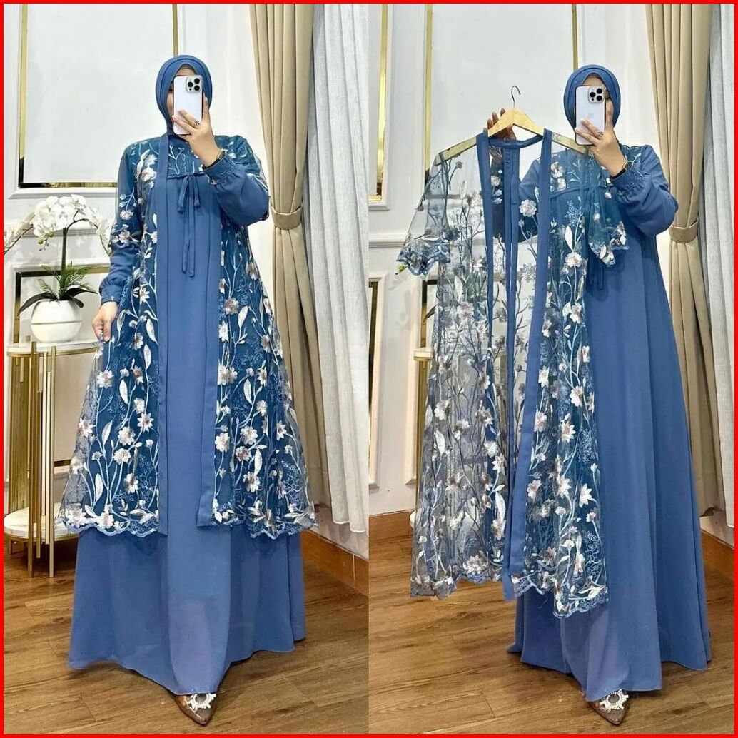 Gamis Tile Denim Laksmi Dress Kondangan Inner Outer Brukat Tille Garden Gamis Outer Lepas Belt Apk