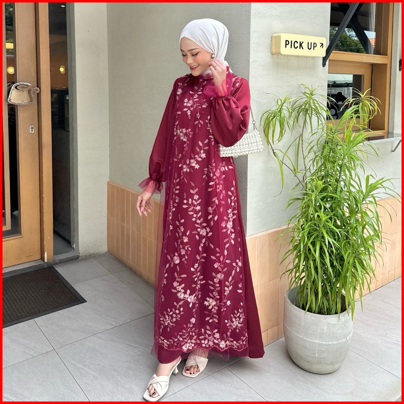 Dezhaf - Aruna Dress Satin Dress Brukat Dress Tile Garden Dress Lebaran