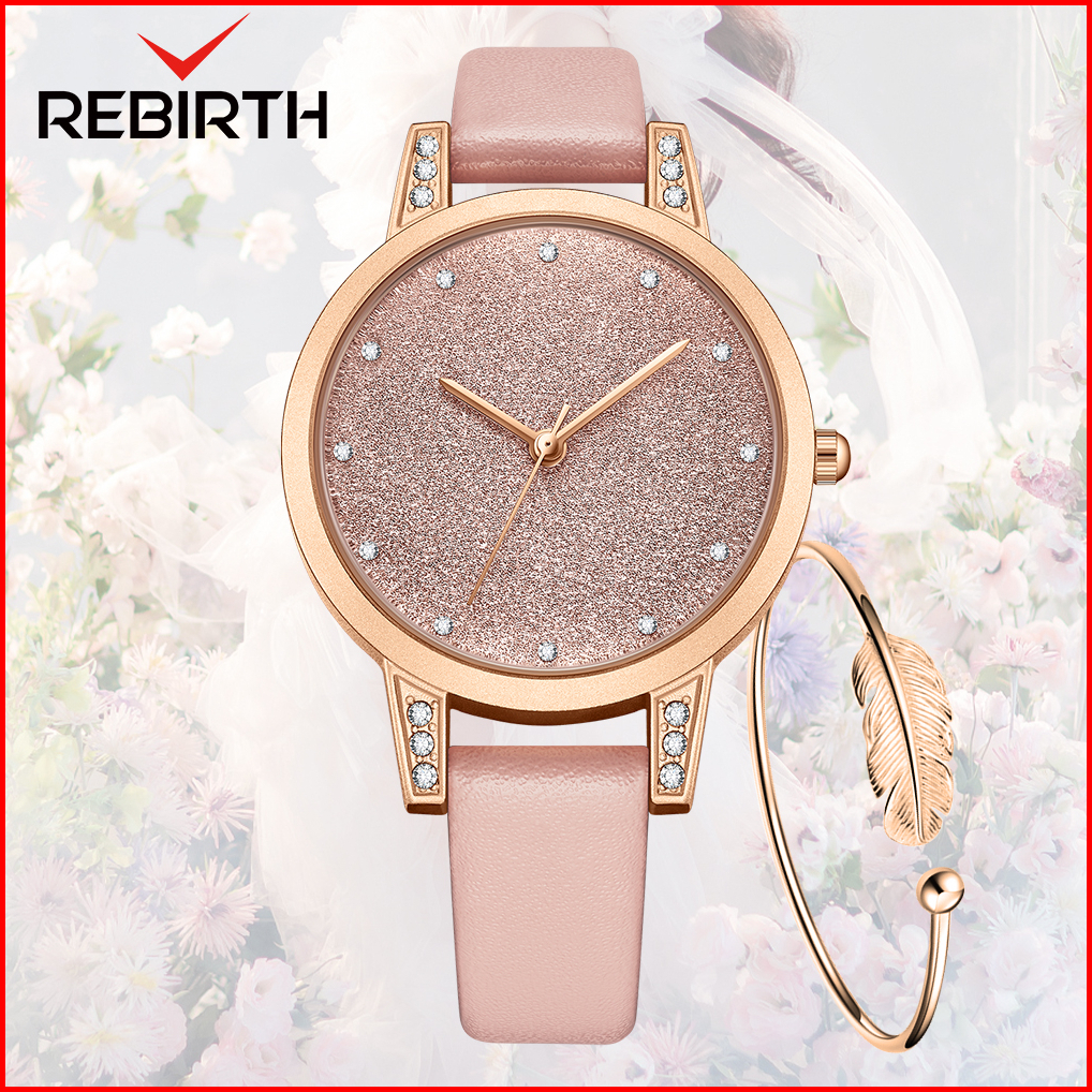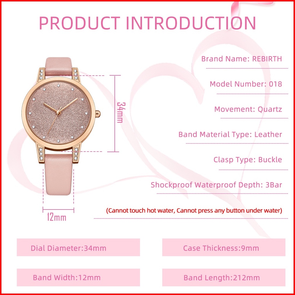 Rebirth Jam Tangan Wanita Santai Bisnis Mode Gaya Tali Kulit Anti Air Jam Tangan Cewek