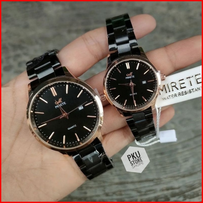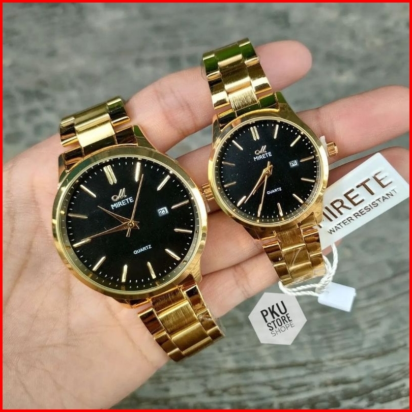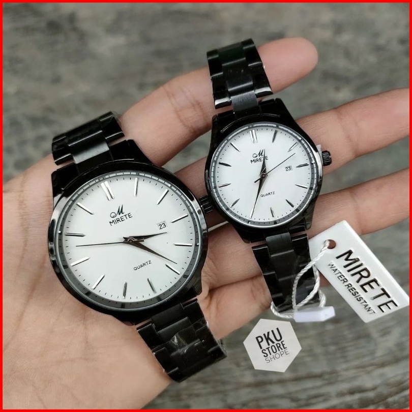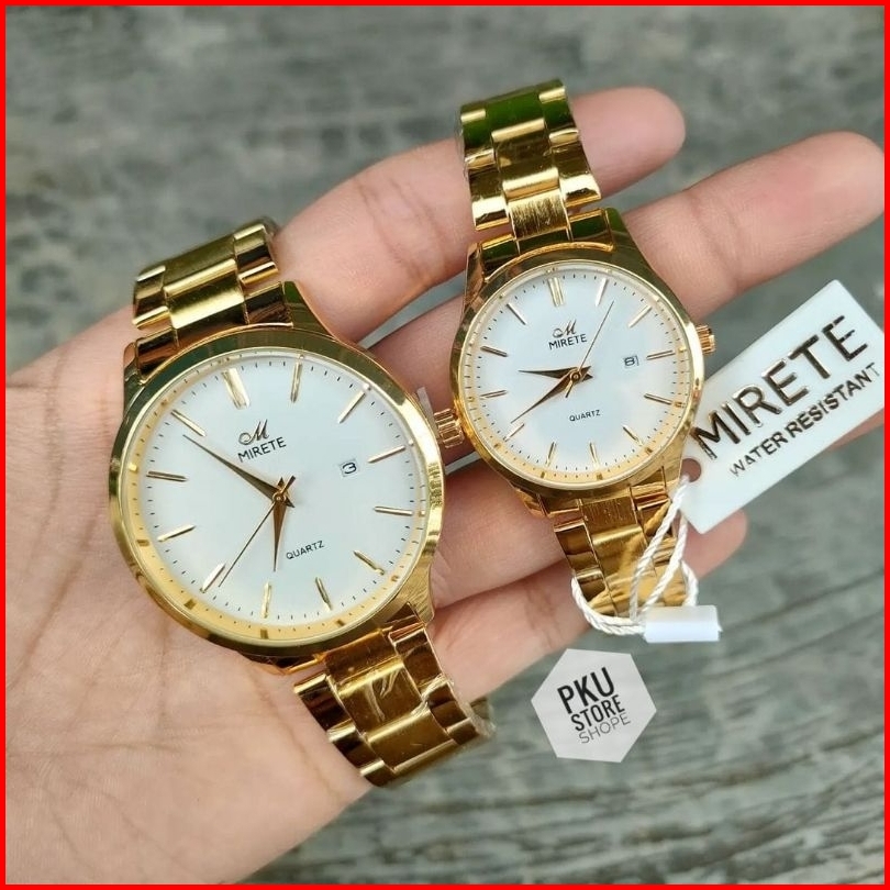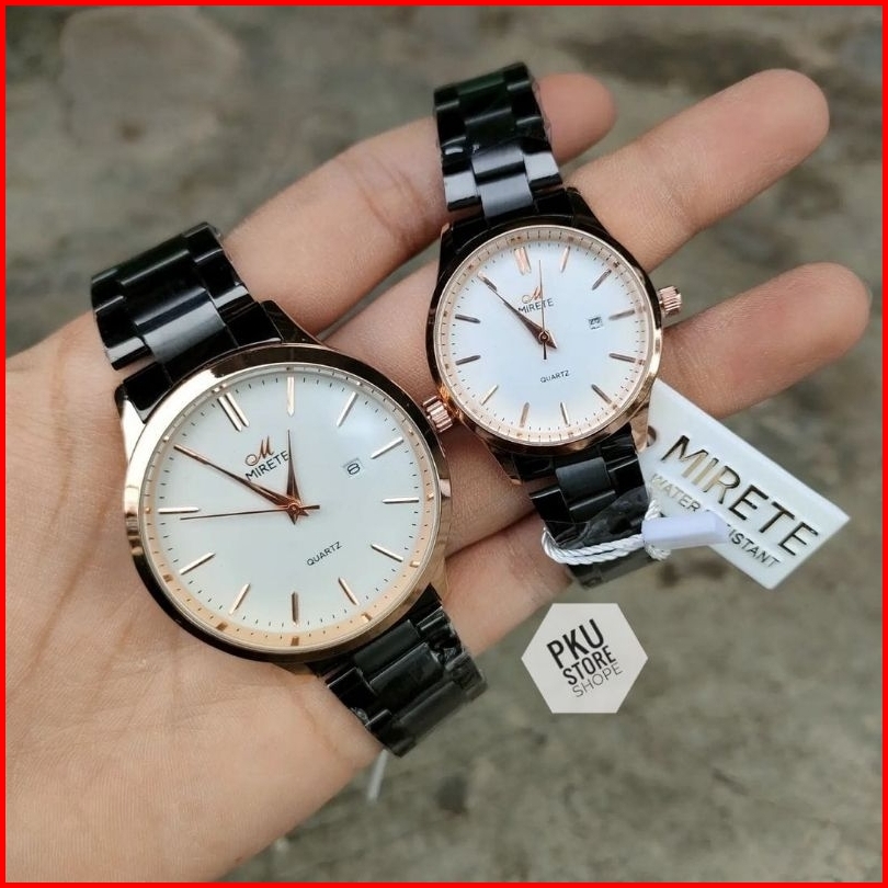Jam Tangan Pasangan Couple Pria Dan Wanita Mirete Original Tanggal Aktif Analog Quartz Water Resistant Tali Rantai Stain