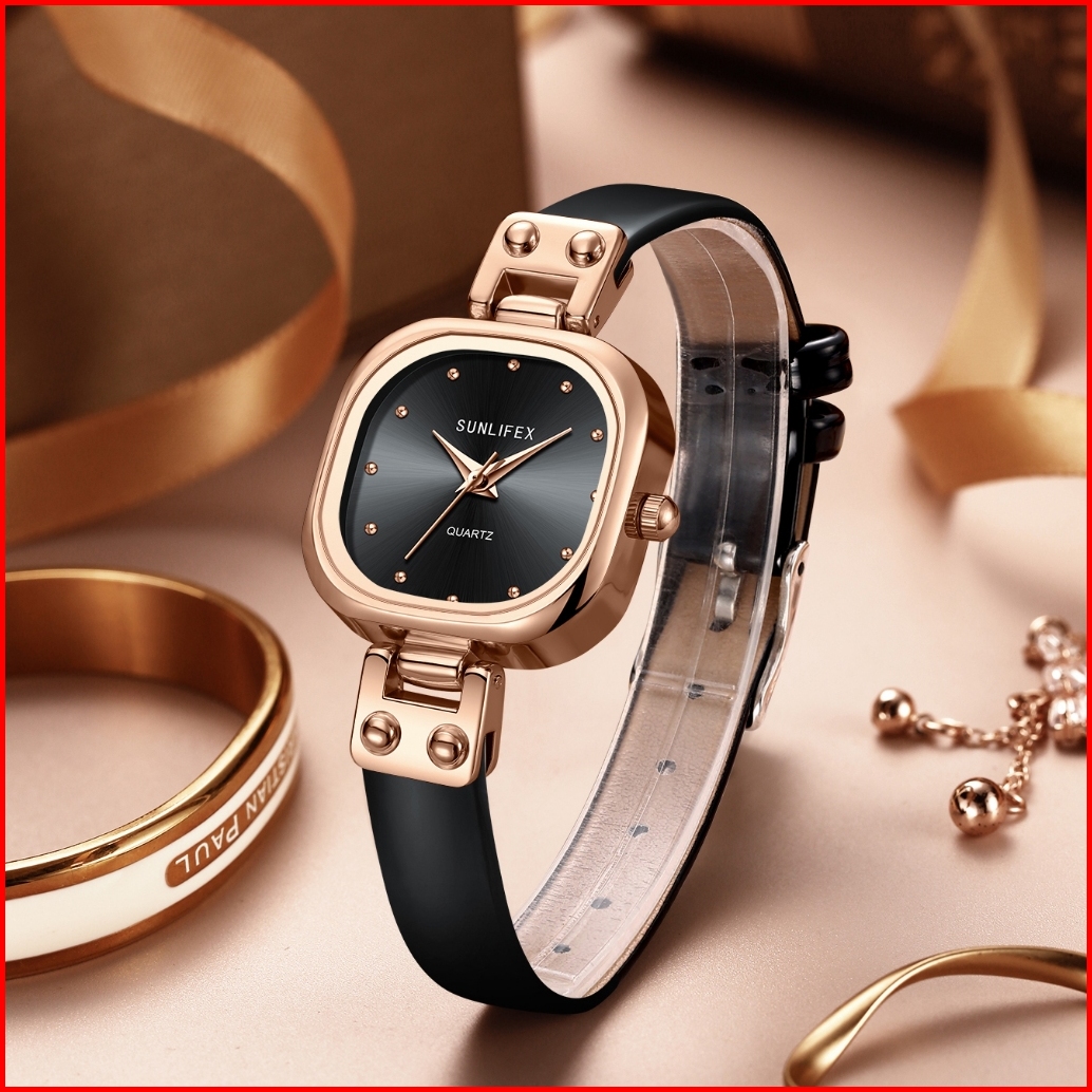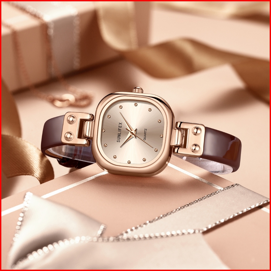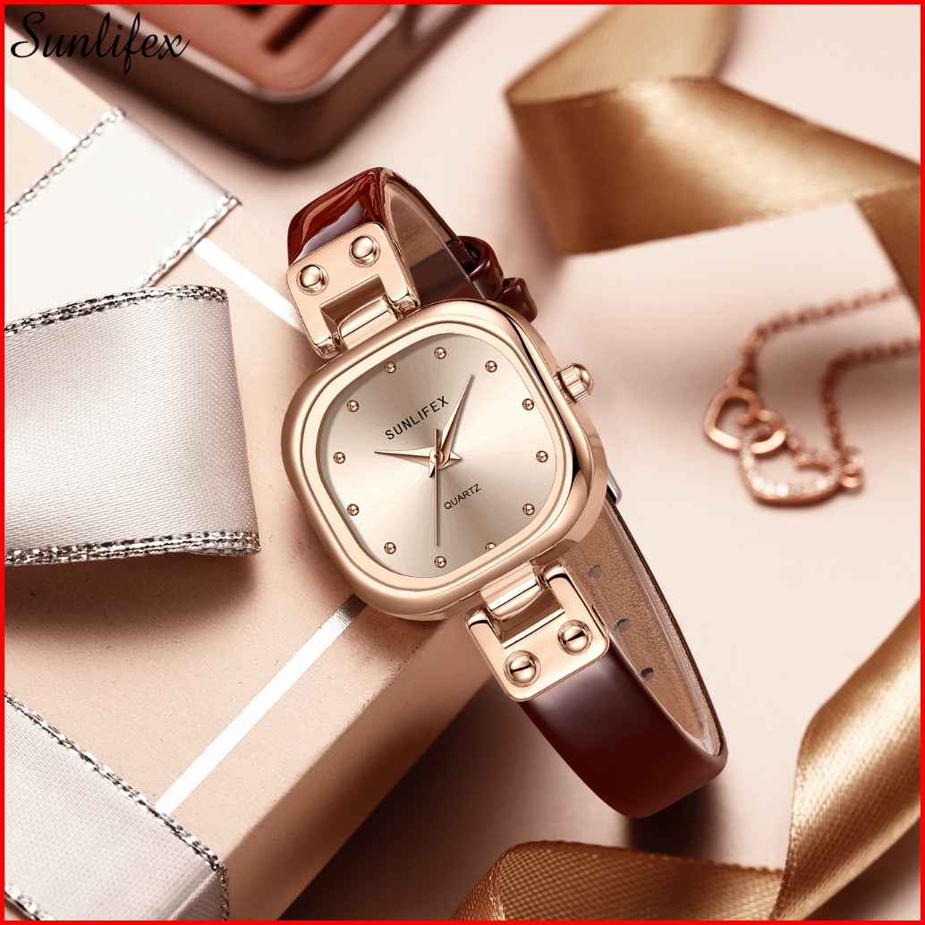 Sunlifex Jam Tangan Wanita Anti Air Kuarsa Elegan Tali Kulit Jam Tangan Cewek Original 5993