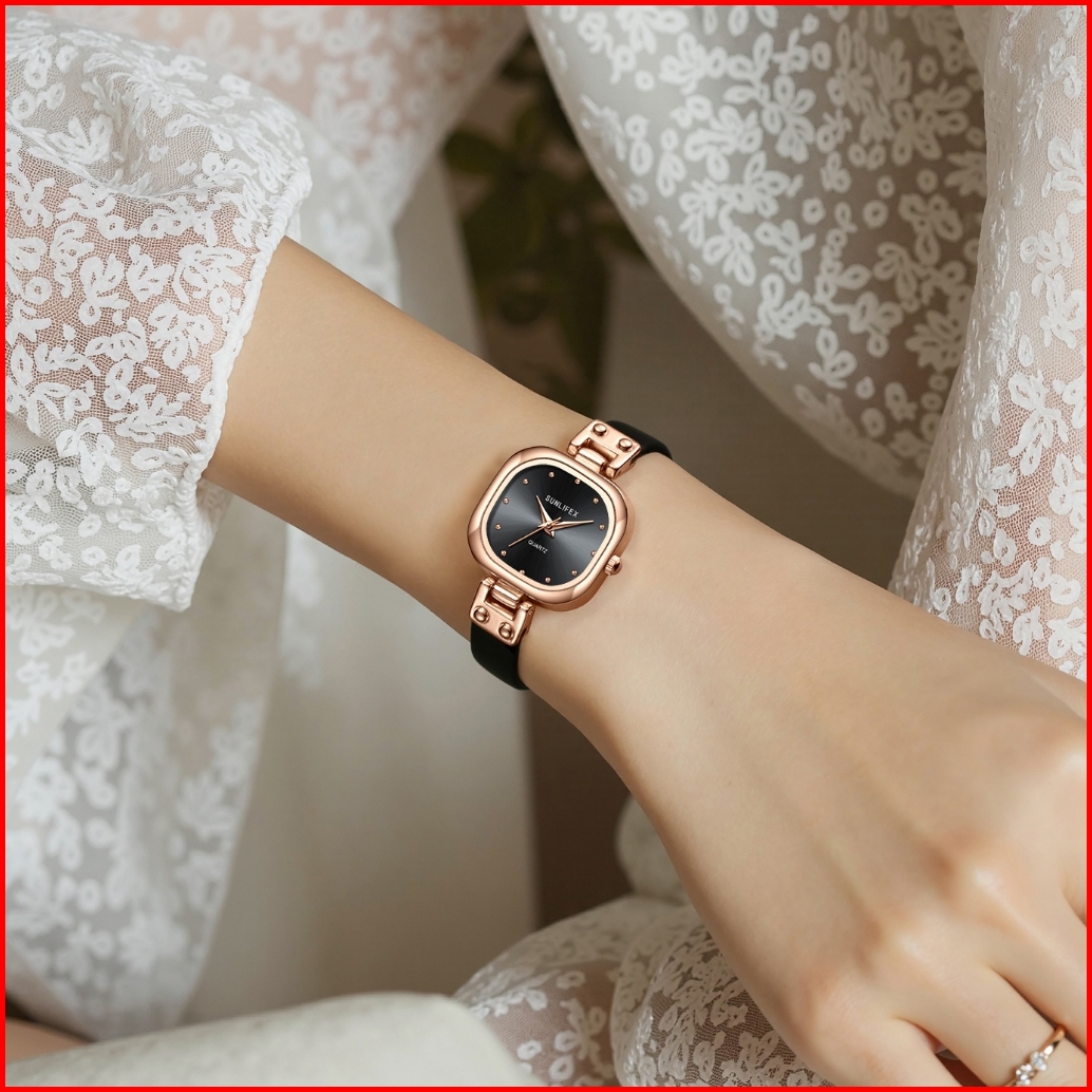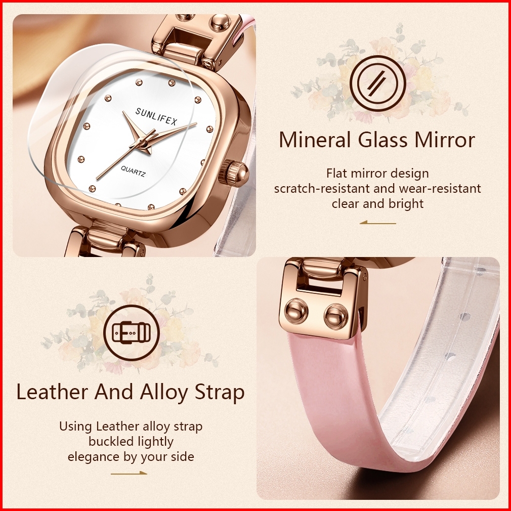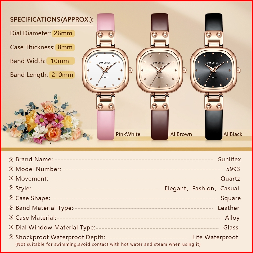 Sunlifex Jam Tangan Wanita Anti Air Kuarsa Elegan Tali Kulit Jam Tangan Cewek Original 5993