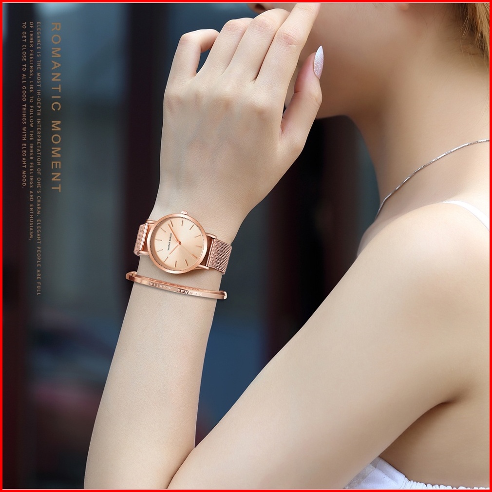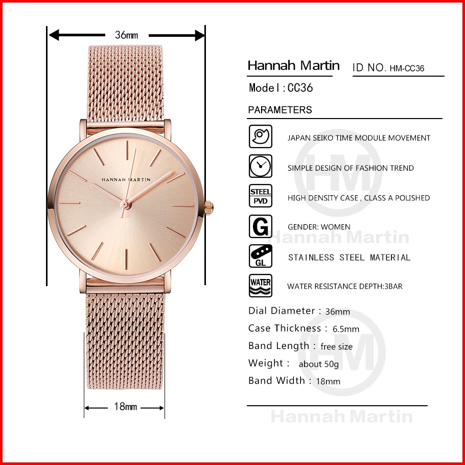 Hannah Martin Jam Tangan Wanita 100 Original Tahan Air Cewek Quartz Stainless Steel Mesh Analog Women Watch Arloji Cc36