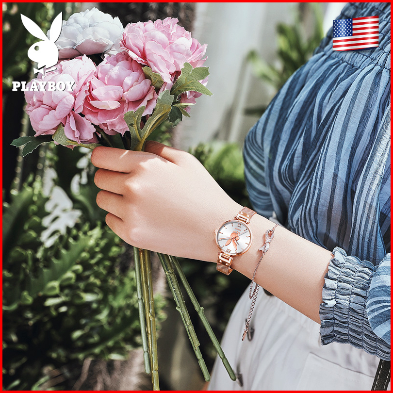 Playboy Jam Tangan Wanita Anti Air Original Kekinian Cewek Fashion Import Kecil Tali Stainless Steel Women Watch Model 2